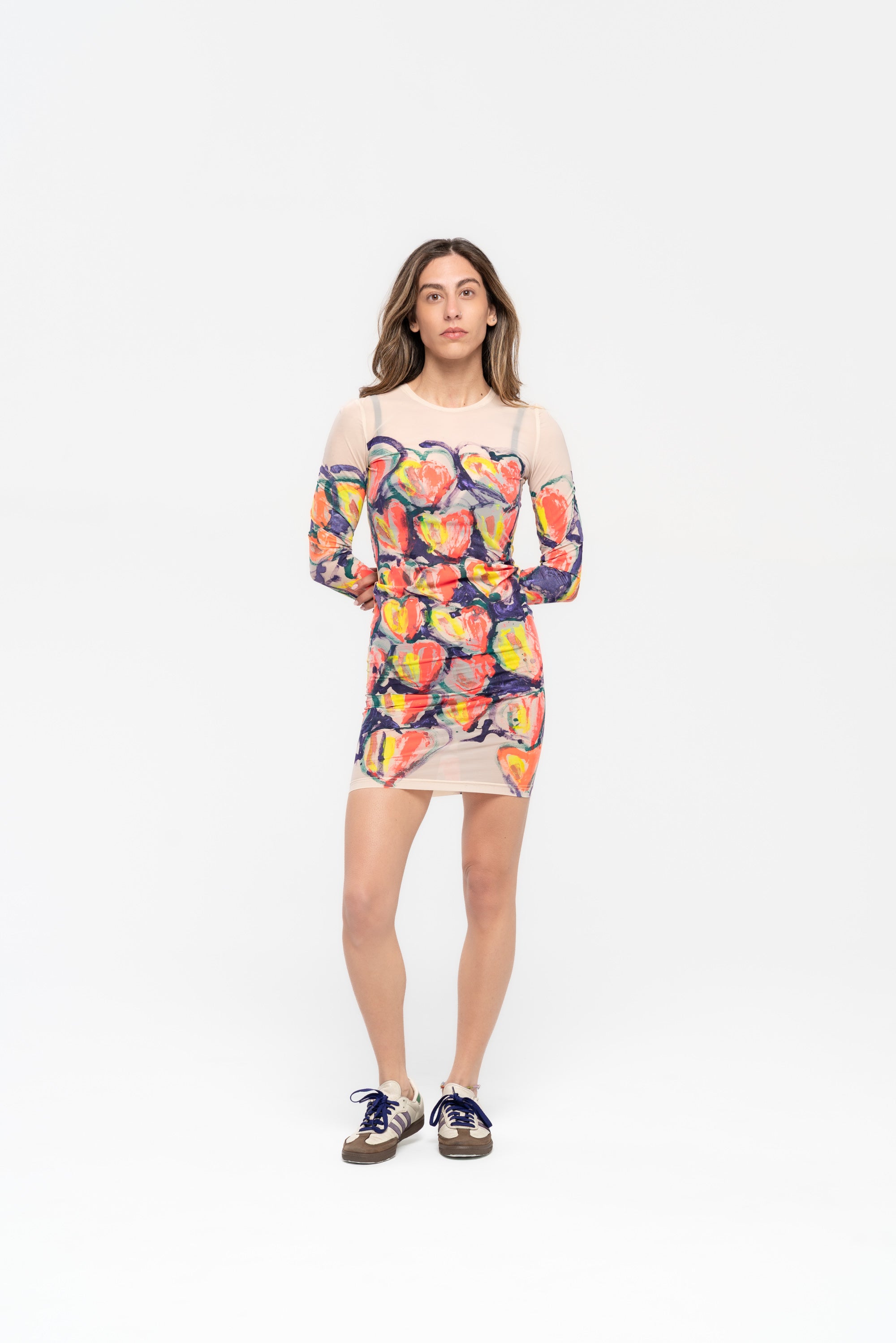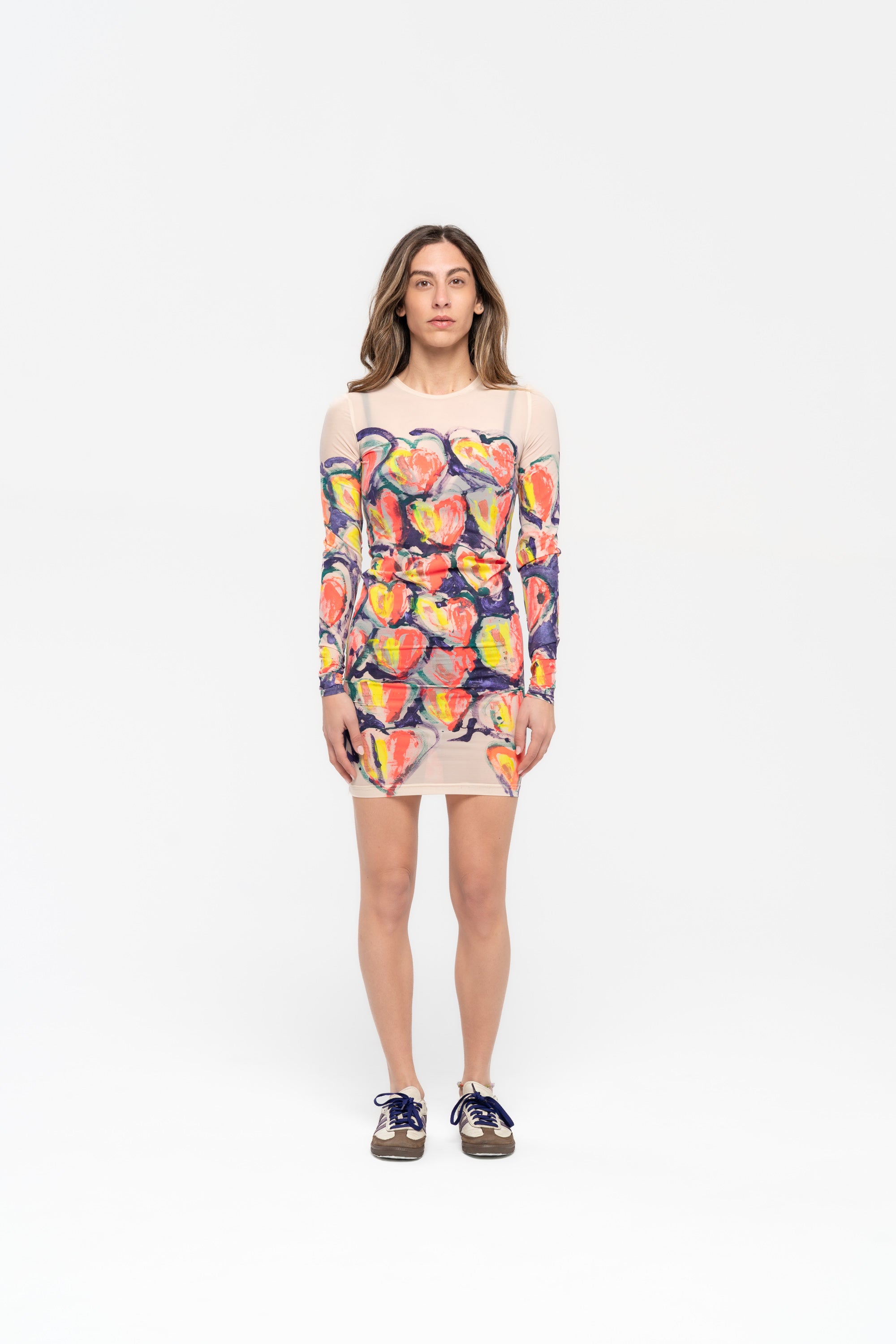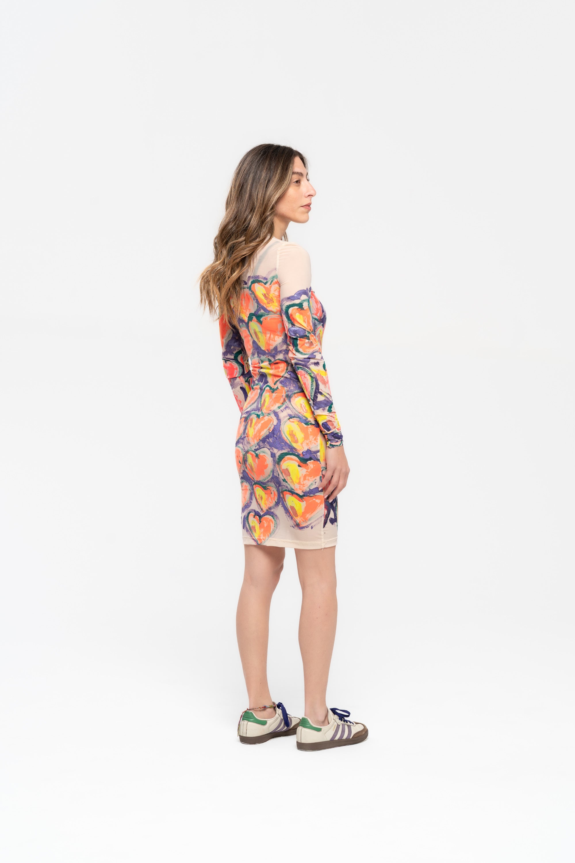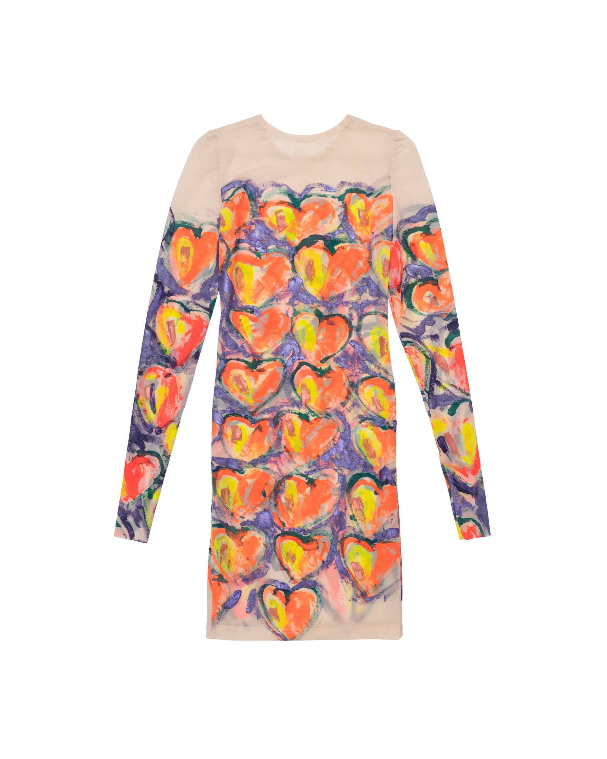 Long sleeved turtle neck mini dress in hand-painted jersey.
