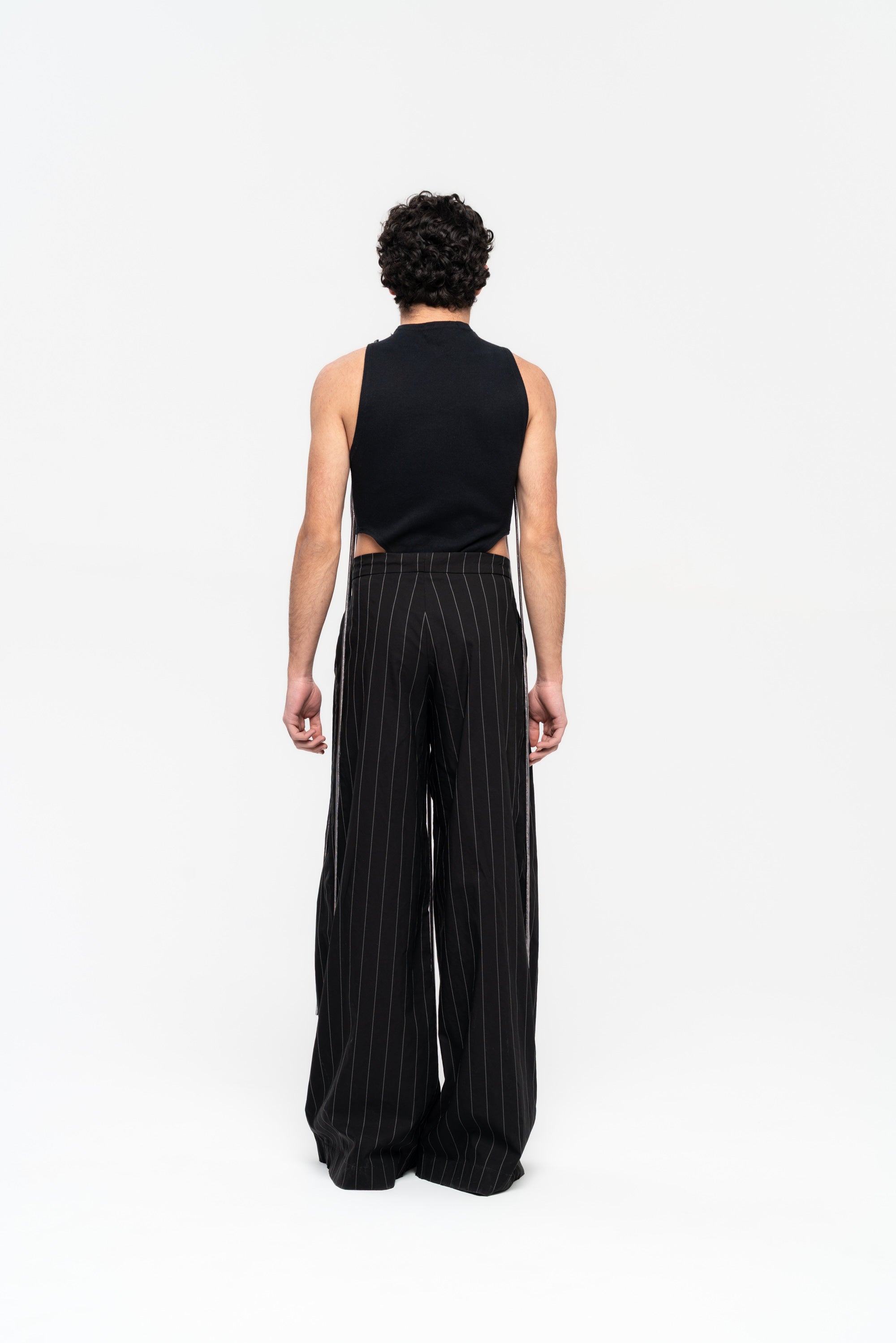 Ribbed bodysuit with jersey strips.