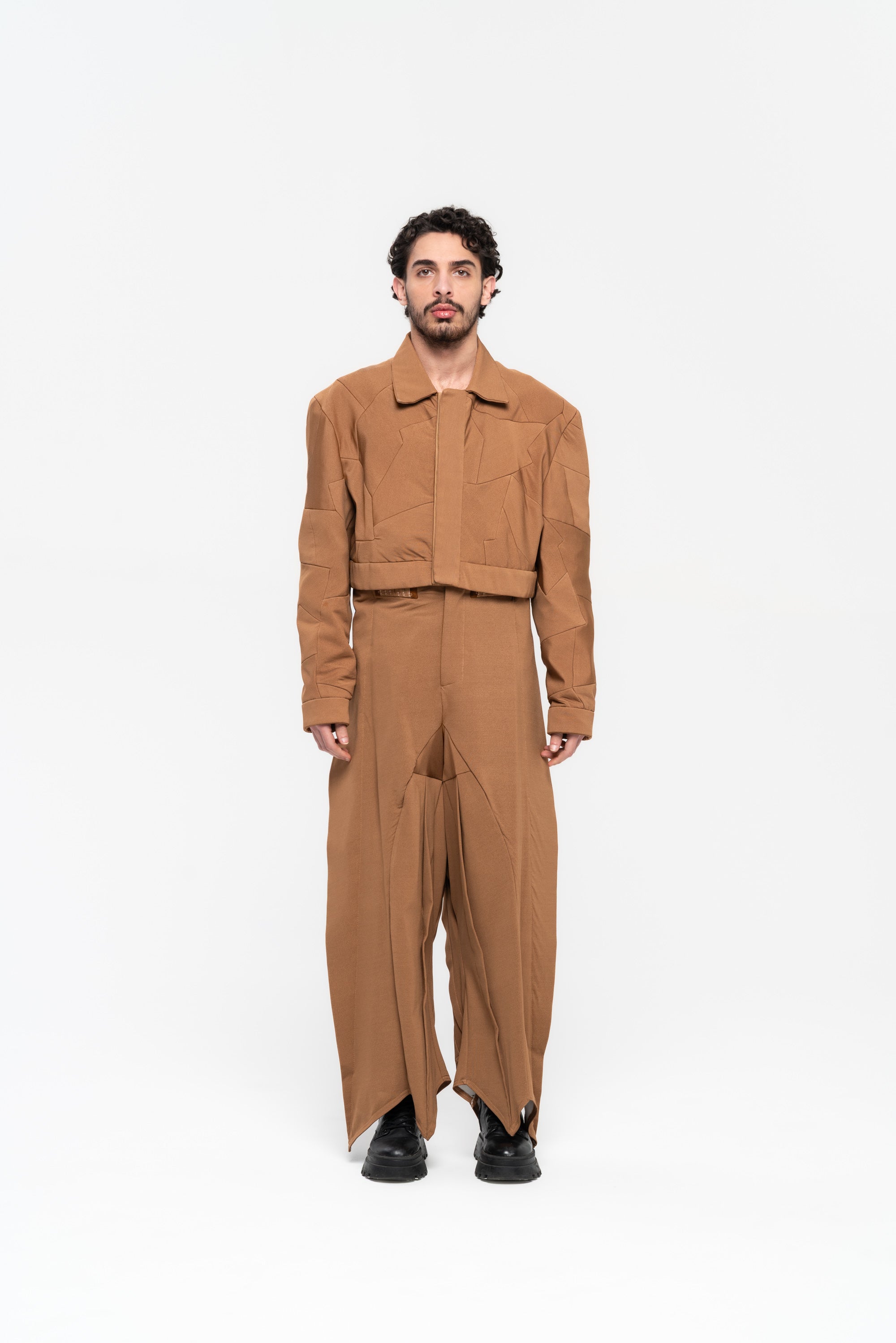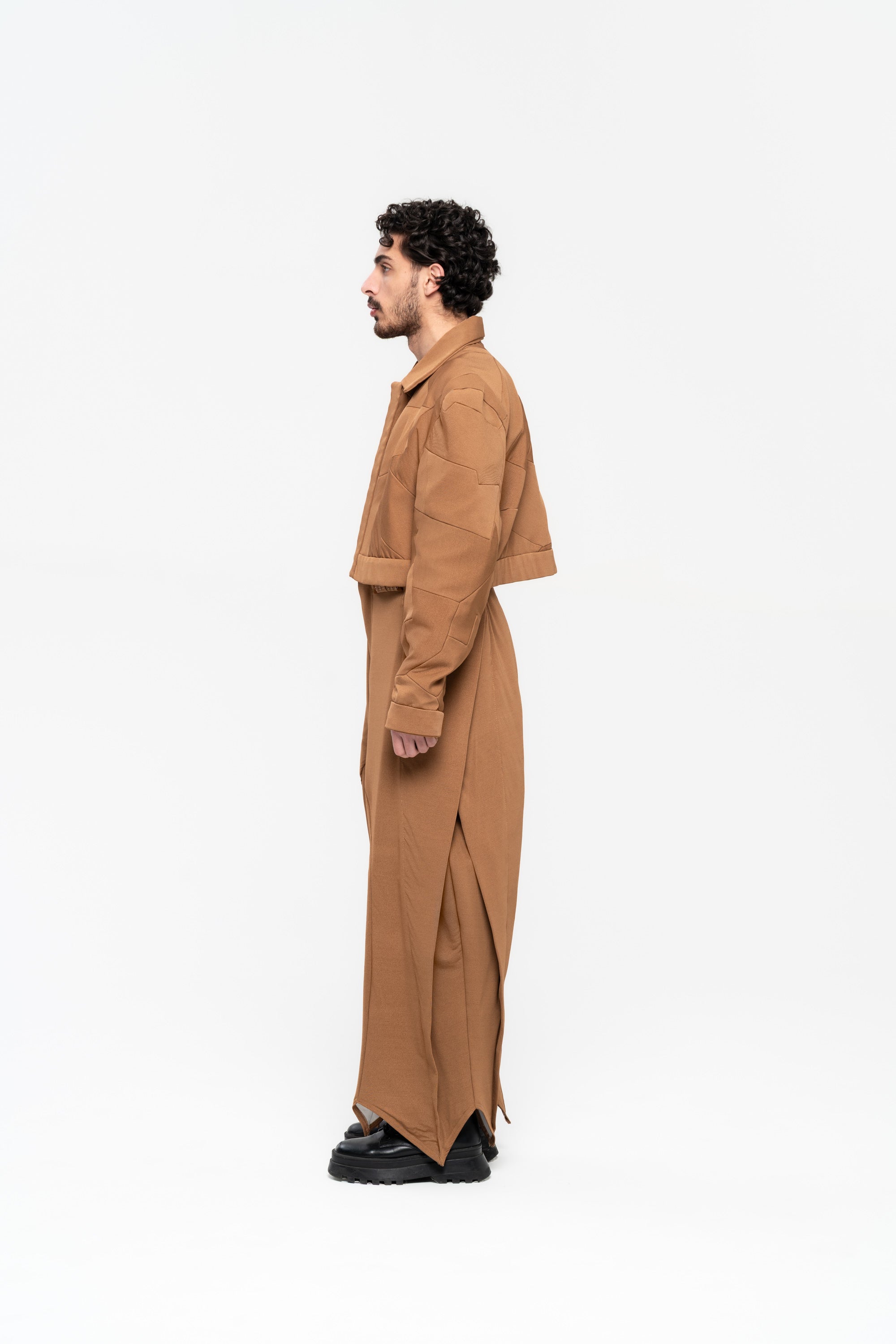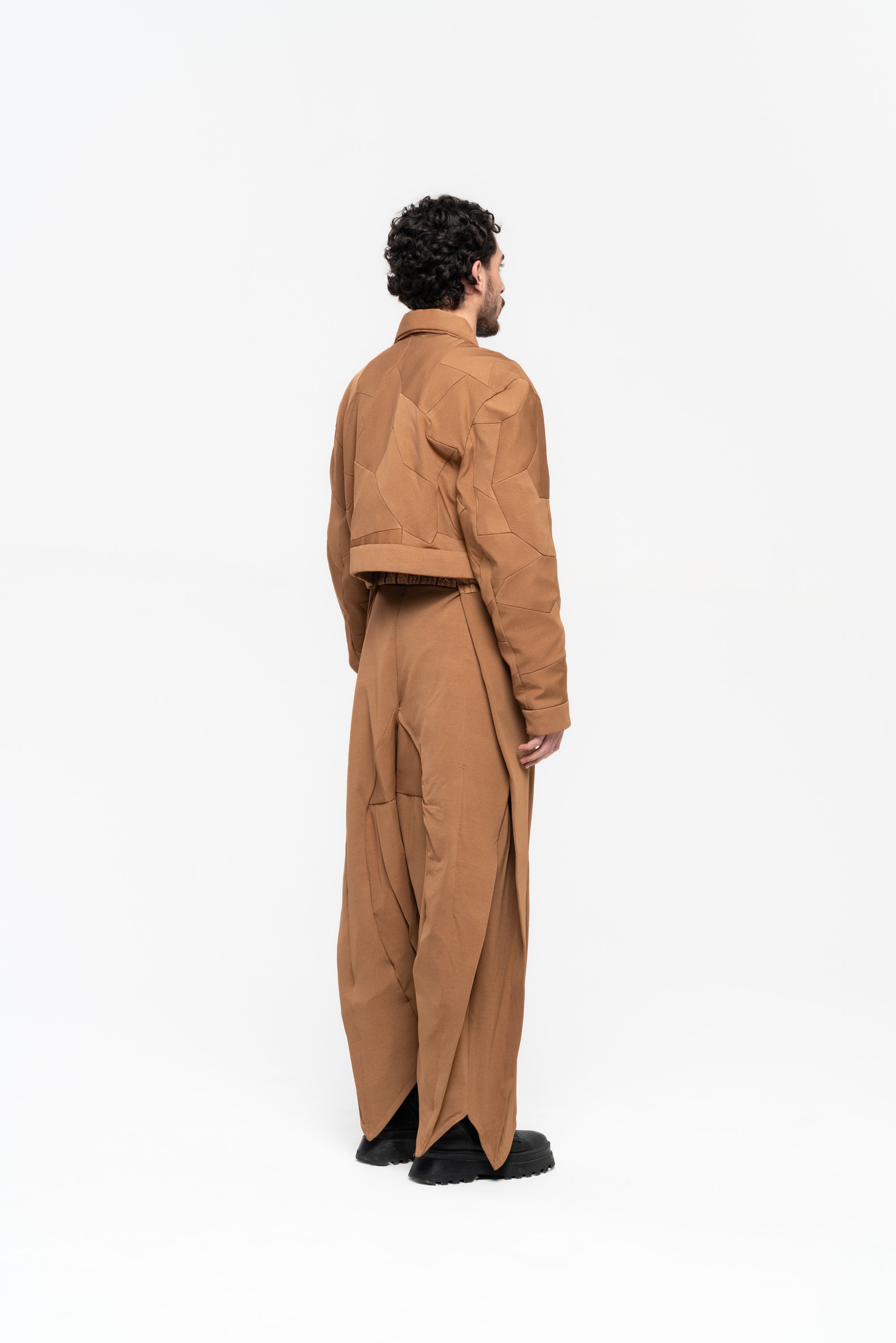 Genderless cropped waist length oversized lined jacket with bra hooks.