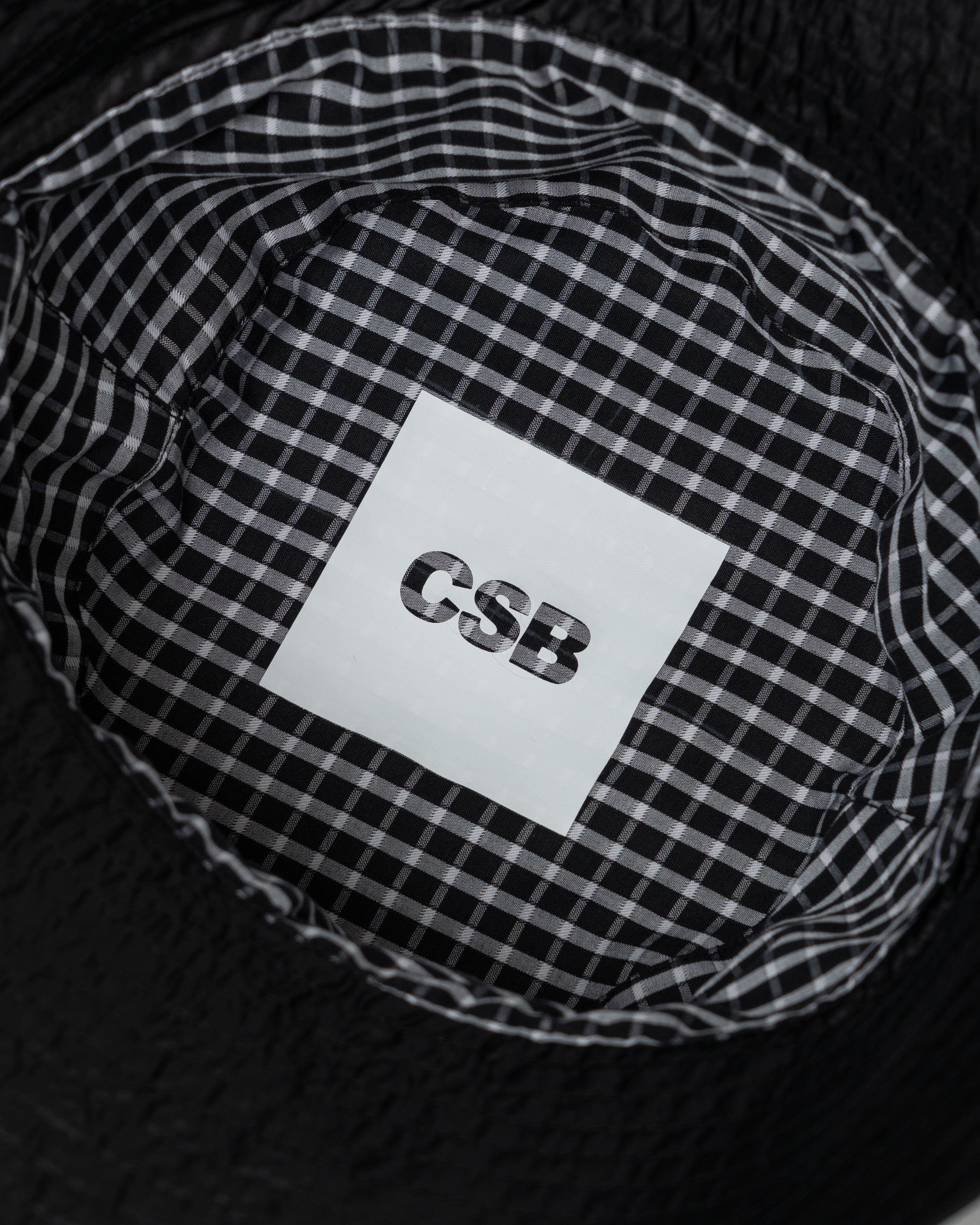 An oversized bucket hat in black nylon. Comes with a custom CSB pouch
