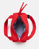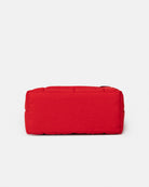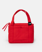 Mini rectangular puffer bag in Red Nylon. Featuring an outside pocket and a detachable adjustable strap