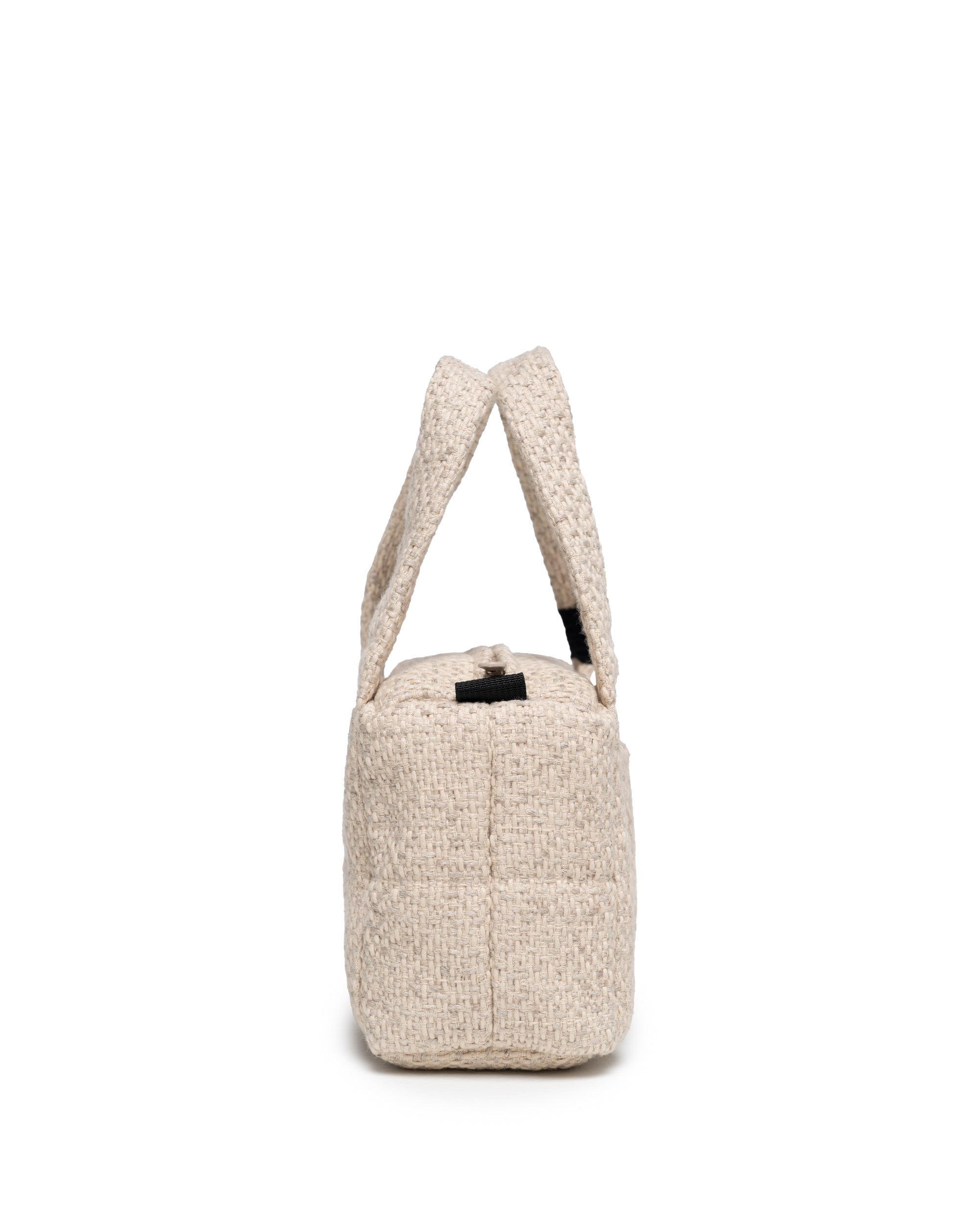 Our much-loved Mini Puffer in a delicate cream weave texture. Limited edition wedding season drop