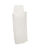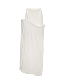 A maxi skirt constructed from a soft polyester-cotton pleated with a grid technique. Featuring understructure on the hem where the fabric drapes and curves, wrapping the body like a vessel in motion. Draped edges soften the structured silhouette.