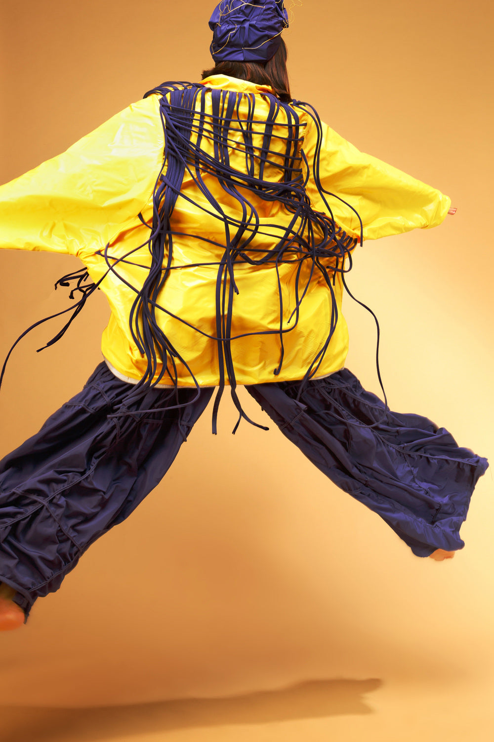 the Adjustable Baggy Nylon Pants is a piece from Ahmad's second year collection titled Umoja.