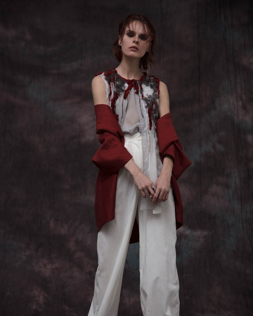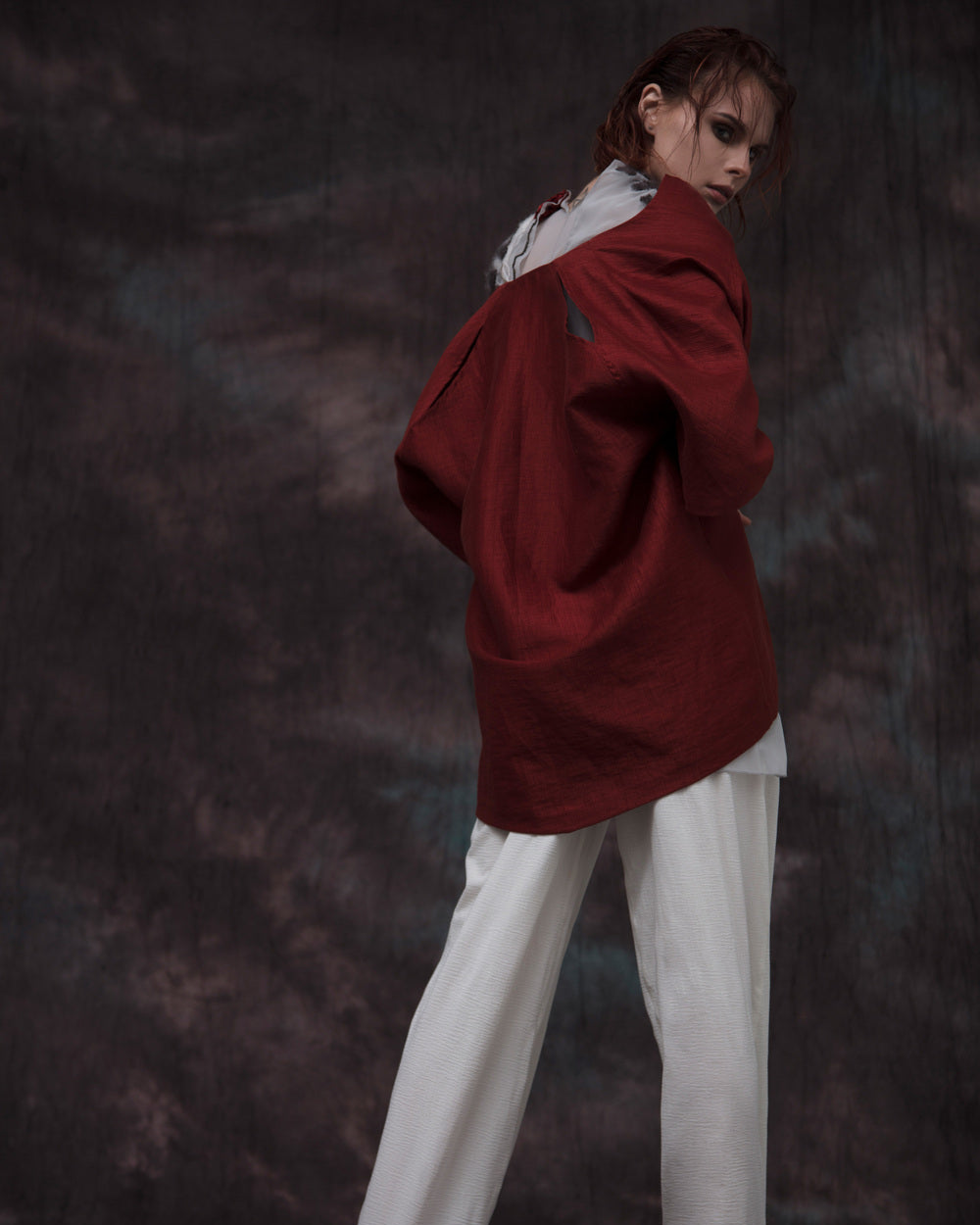 The Stiffened Gauze Wide Leg Pants is a piece from Amir’s second-year collection titled Varnish.