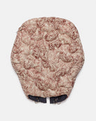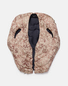 Dramatic ear-shaped block printed puffer vest featuring a comfy knit jersey lining with embroidered yarn and large metal loop accessories on the shoulder and hem.