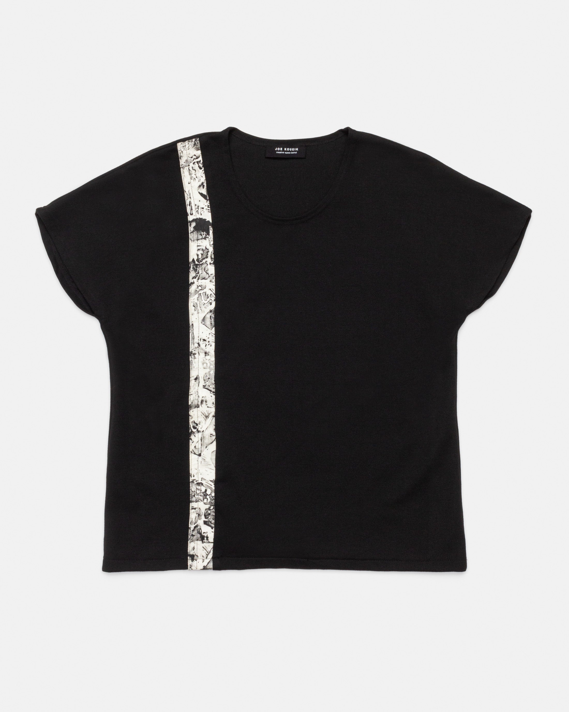 A classic tee with a single off-center, block-printed stripe and a panel pocket.