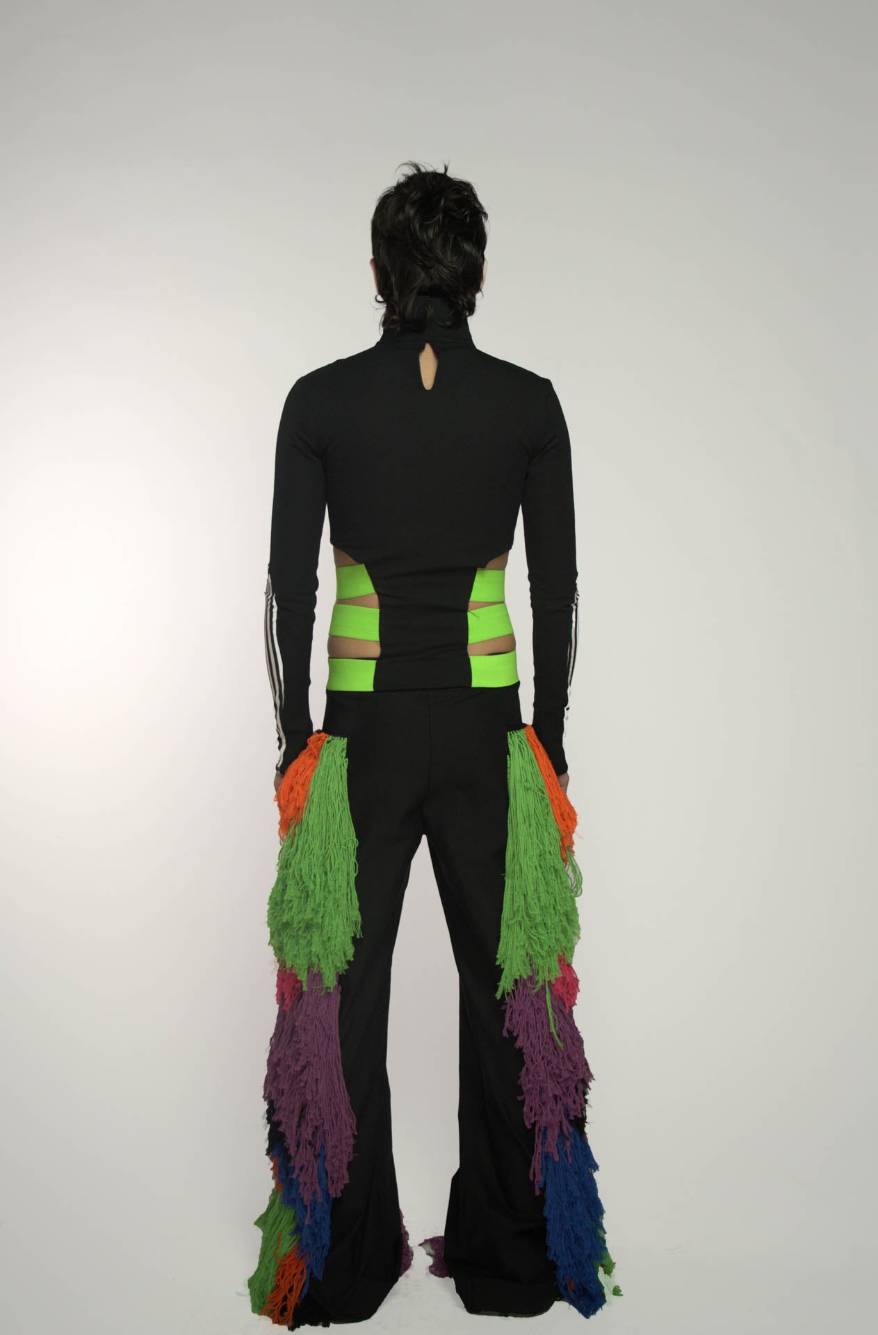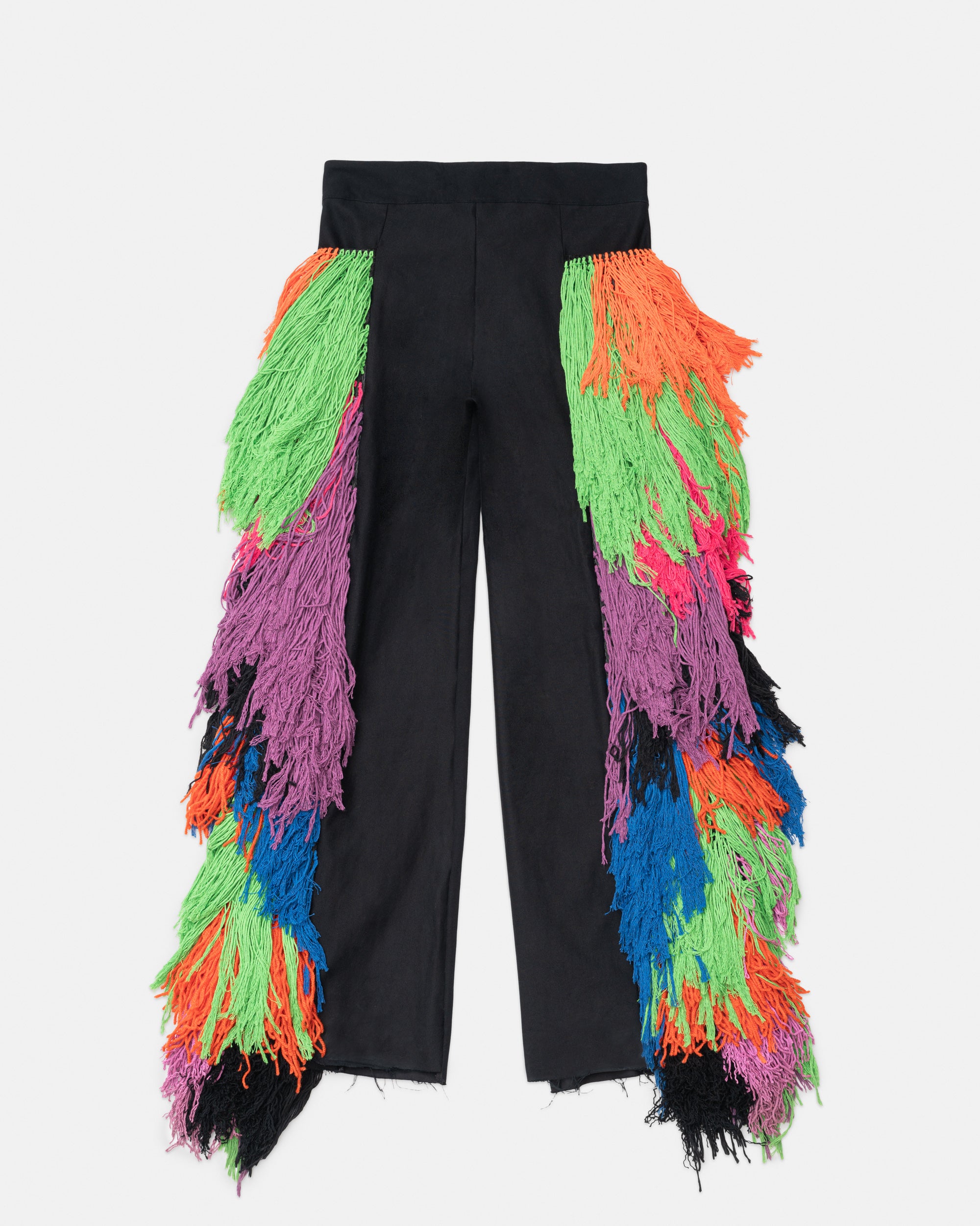 High waisted trousers with material work side leg panels