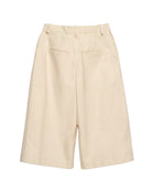 These long culotte-style shorts, crafted in 100% cotton, feature wide front pleats that echo the sculptural volume of the matching blazer.