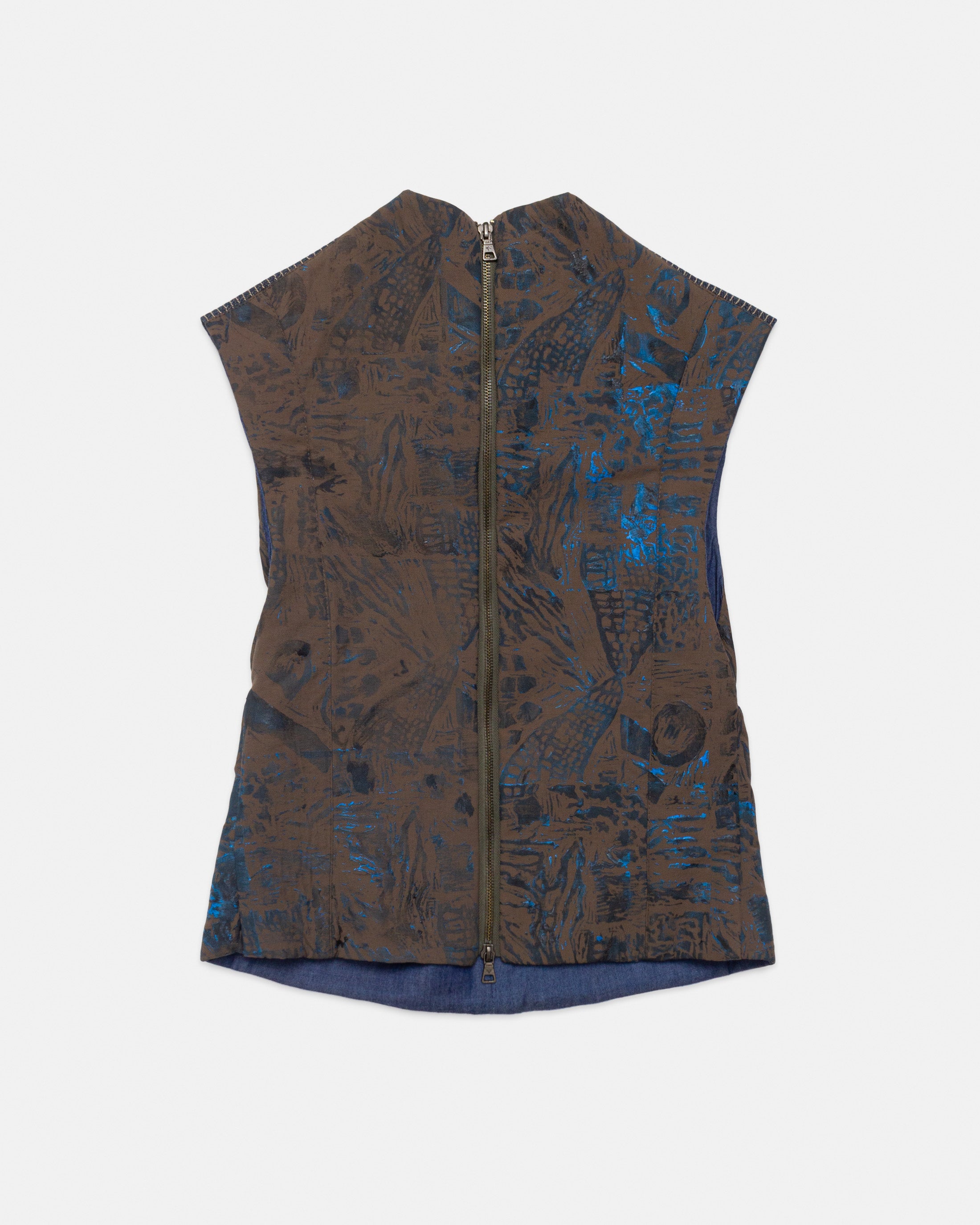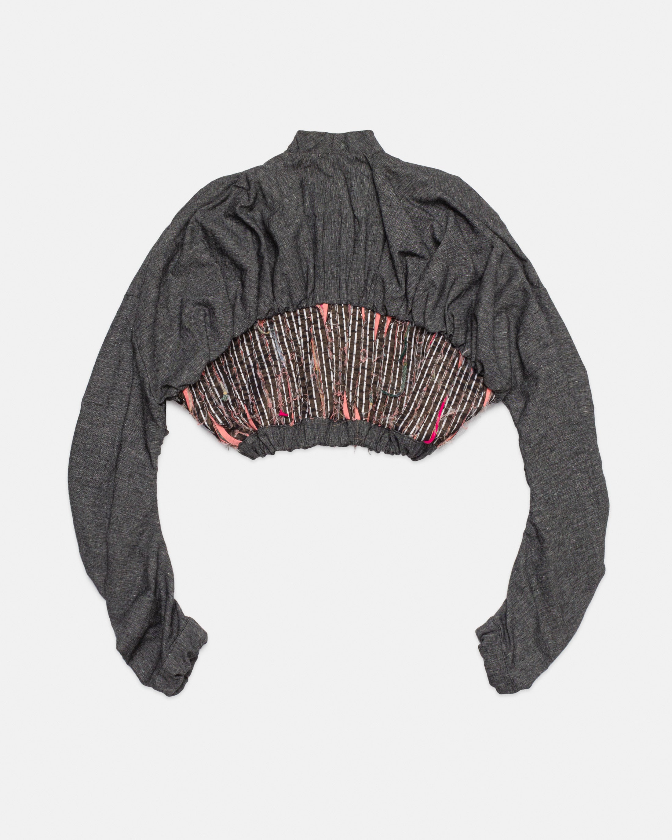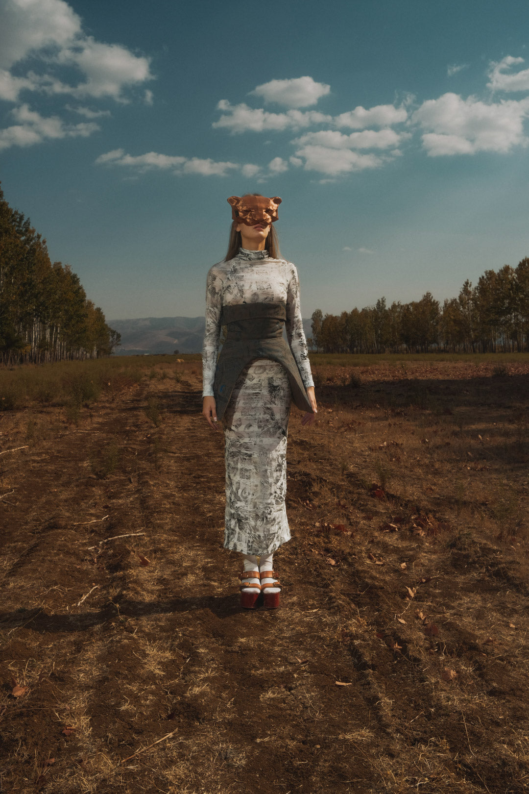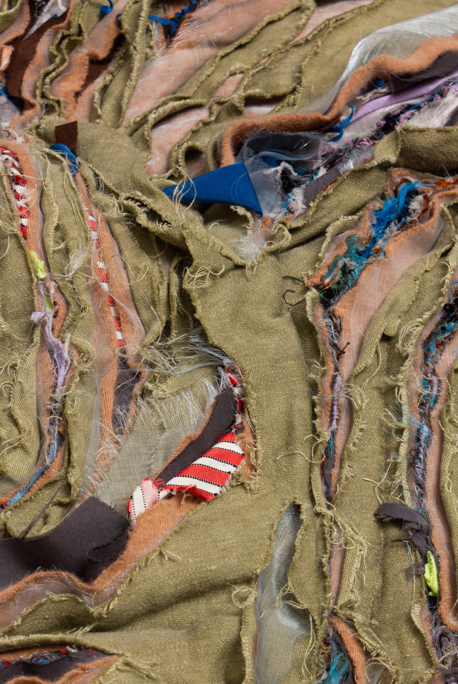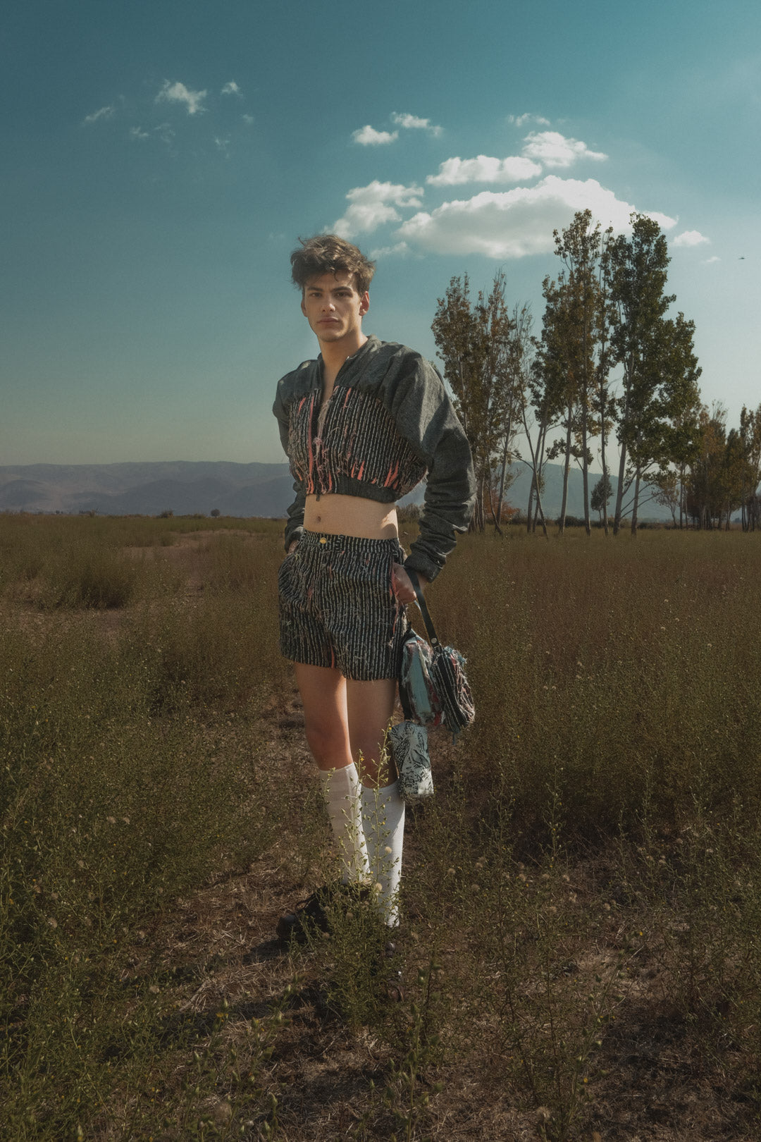 Feral Hearts is a collection that celebrates the wilderness and animal instinct that reside in all humans, and the adventures that teach one to be in touch with the magic of being. Prominent in the collection is the technique of slashing, which produces a heavy, raw effect, like ravaged fur or wild animal skins. The color story is earthy, scattered with pop colors, reflecting light in the darkness, hope and wonder. A block print reminiscent of animal silhouettes also runs throughout the collection.