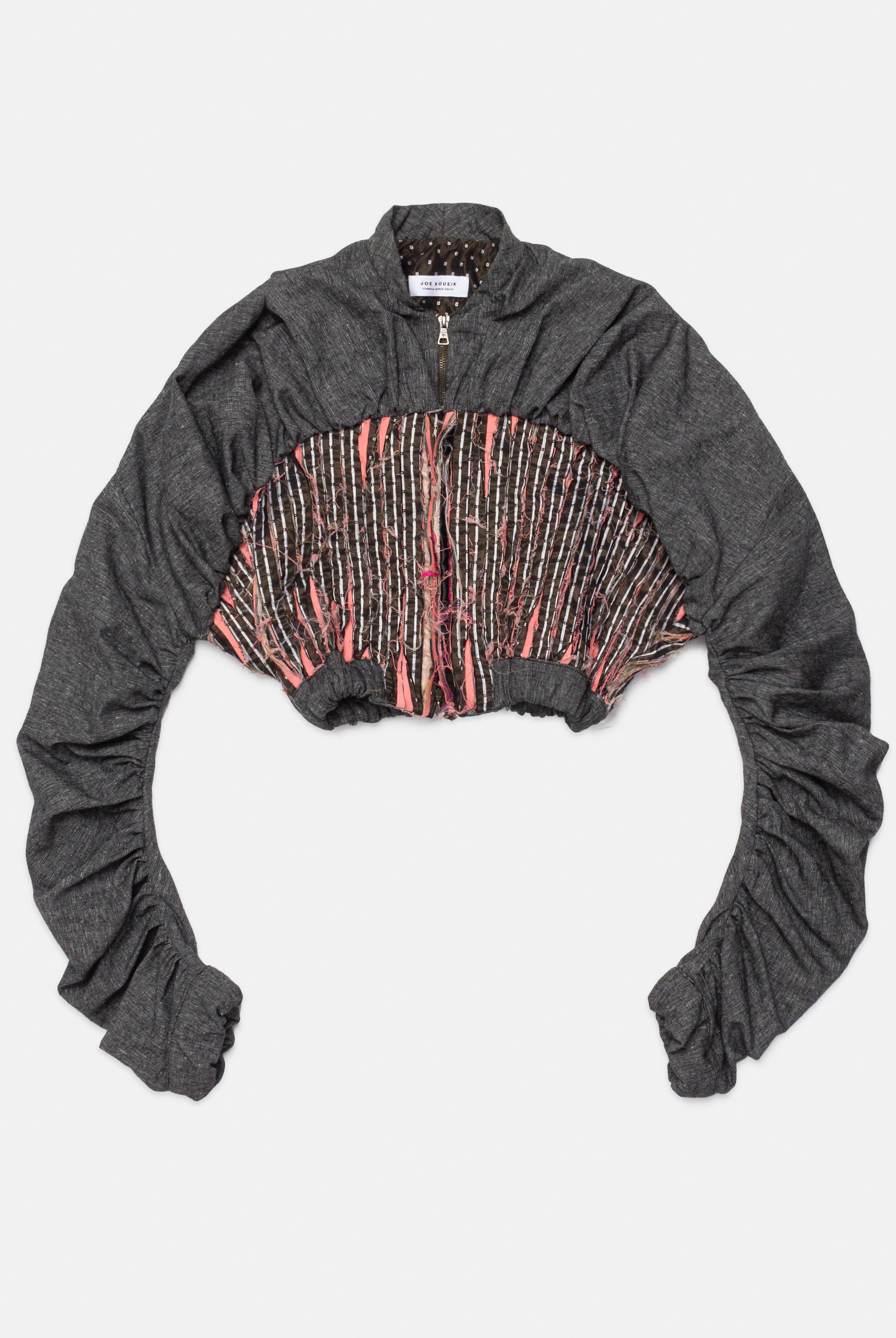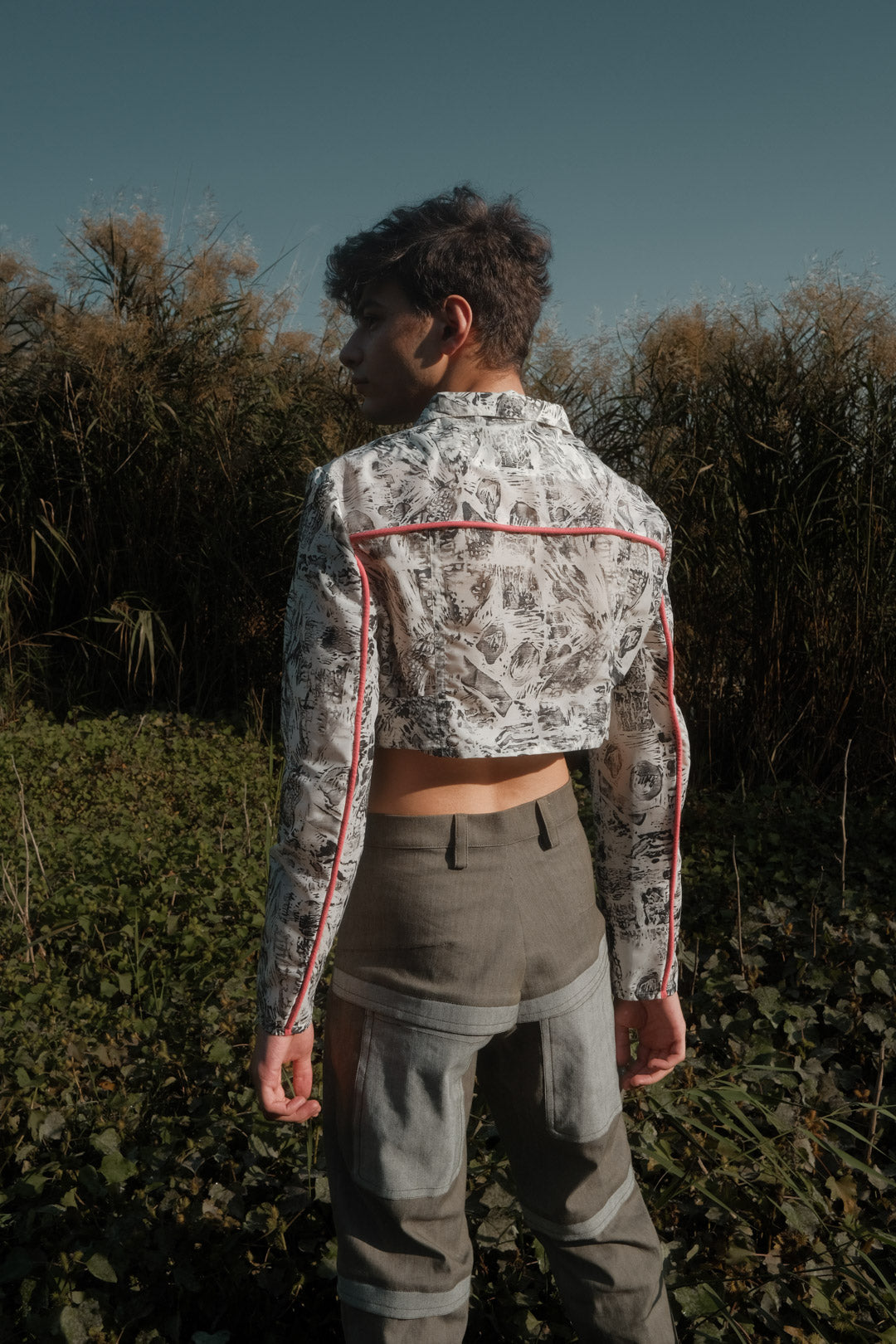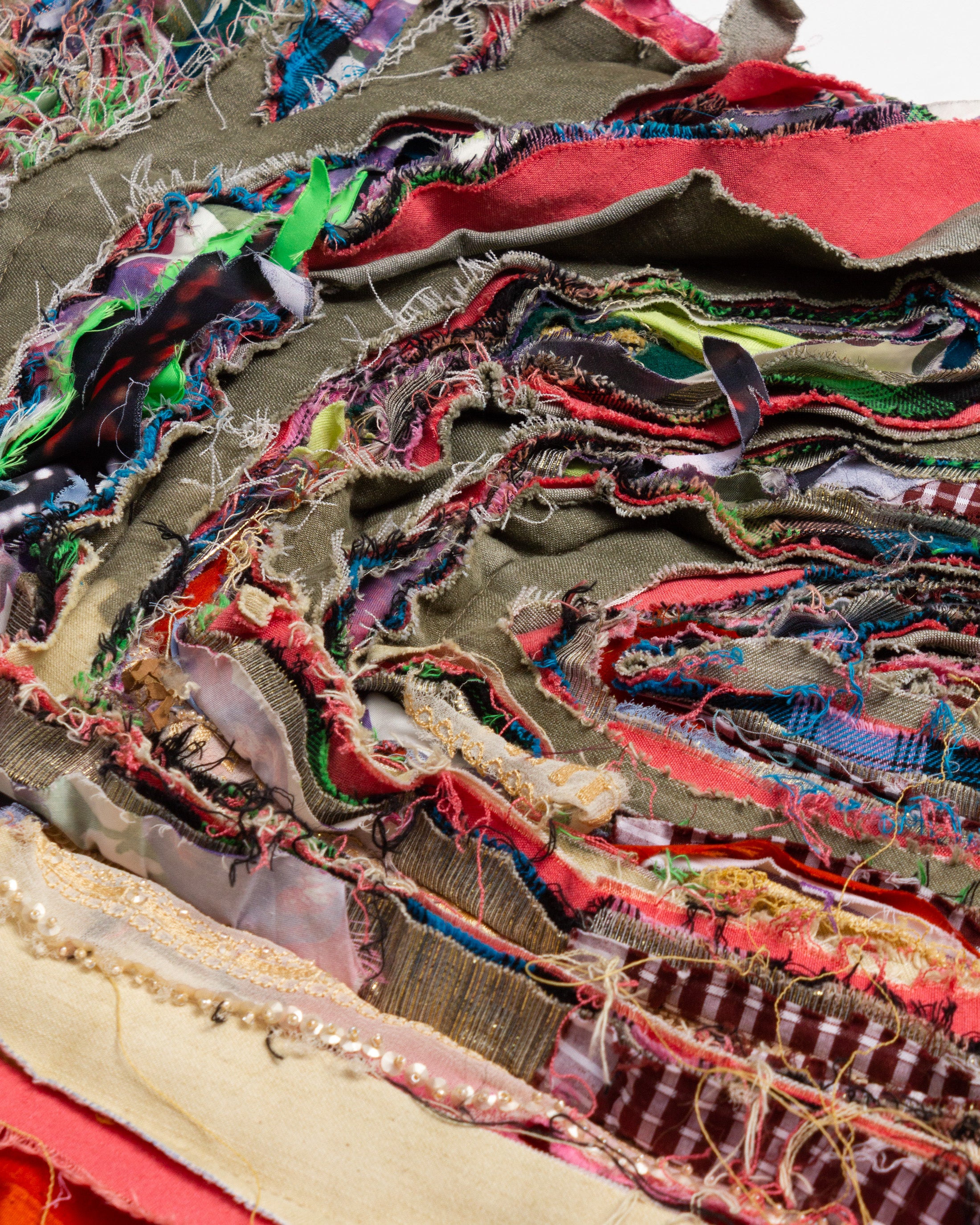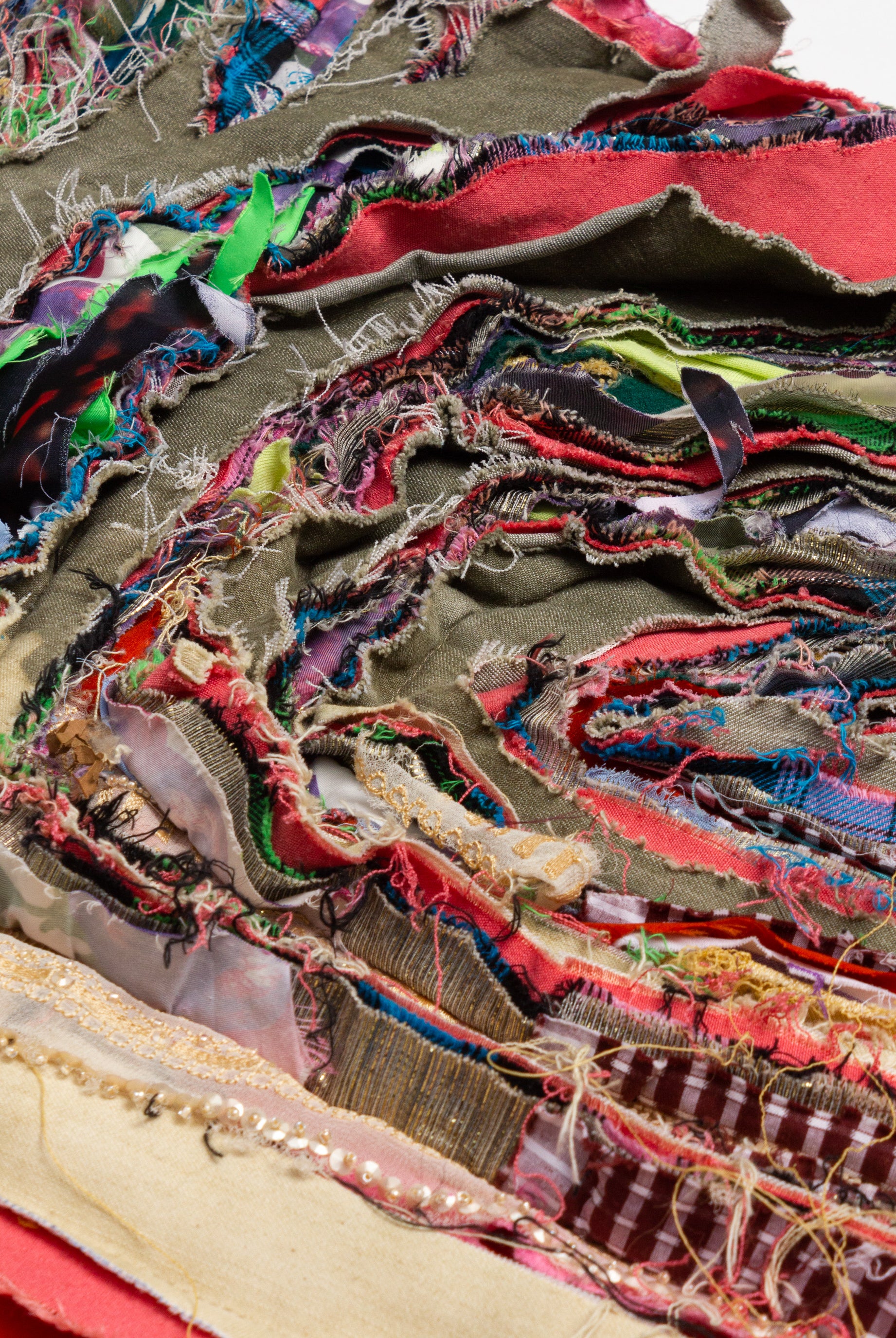 Feral Hearts is a collection that celebrates the wilderness and animal instinct that reside in all humans, and the adventures that teach one to be in touch with the magic of being. Prominent in the collection is the technique of slashing, which produces a heavy, raw effect, like ravaged fur or wild animal skins. The color story is earthy, scattered with pop colors, reflecting light in the darkness, hope and wonder. A block print reminiscent of animal silhouettes also runs throughout the collection.