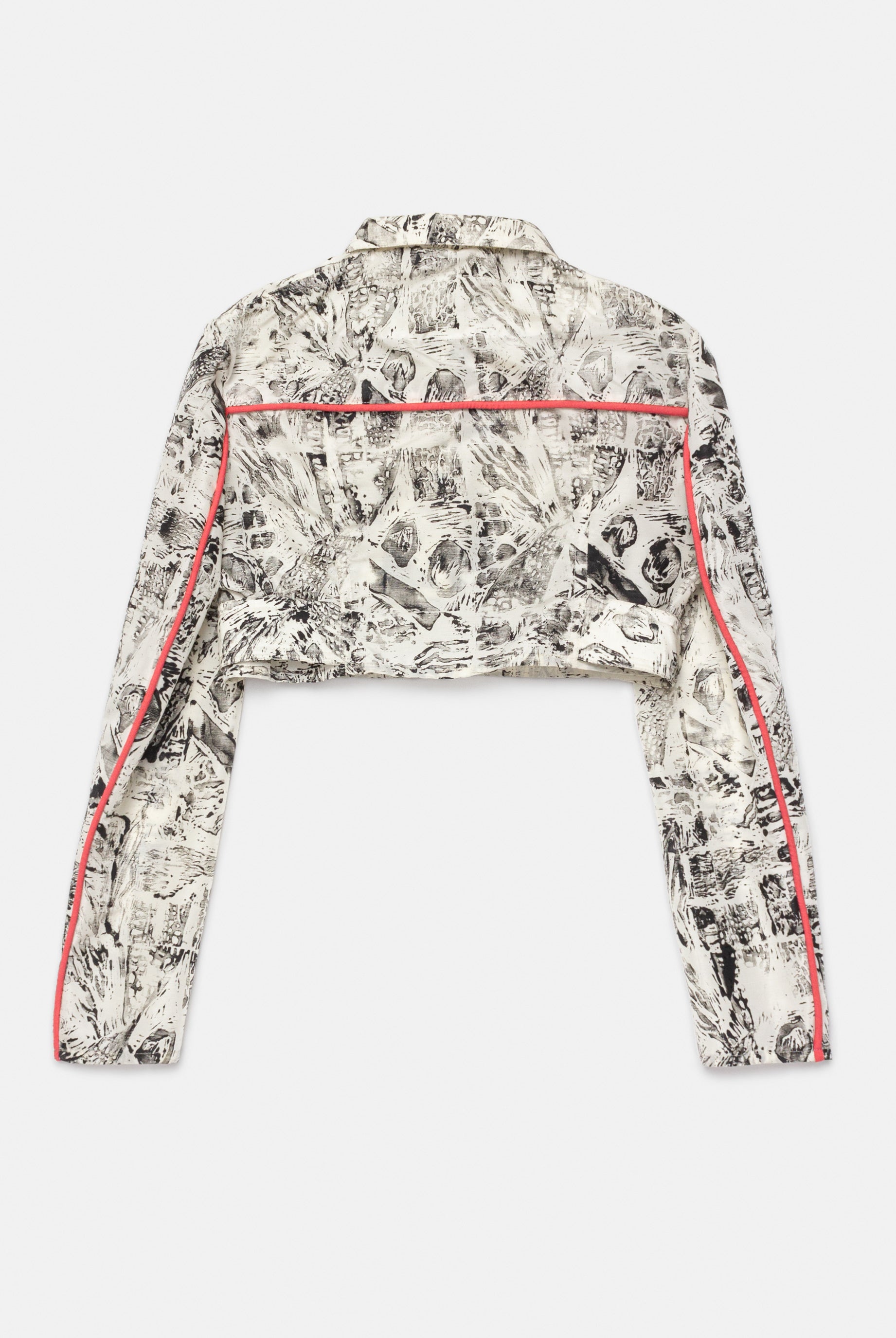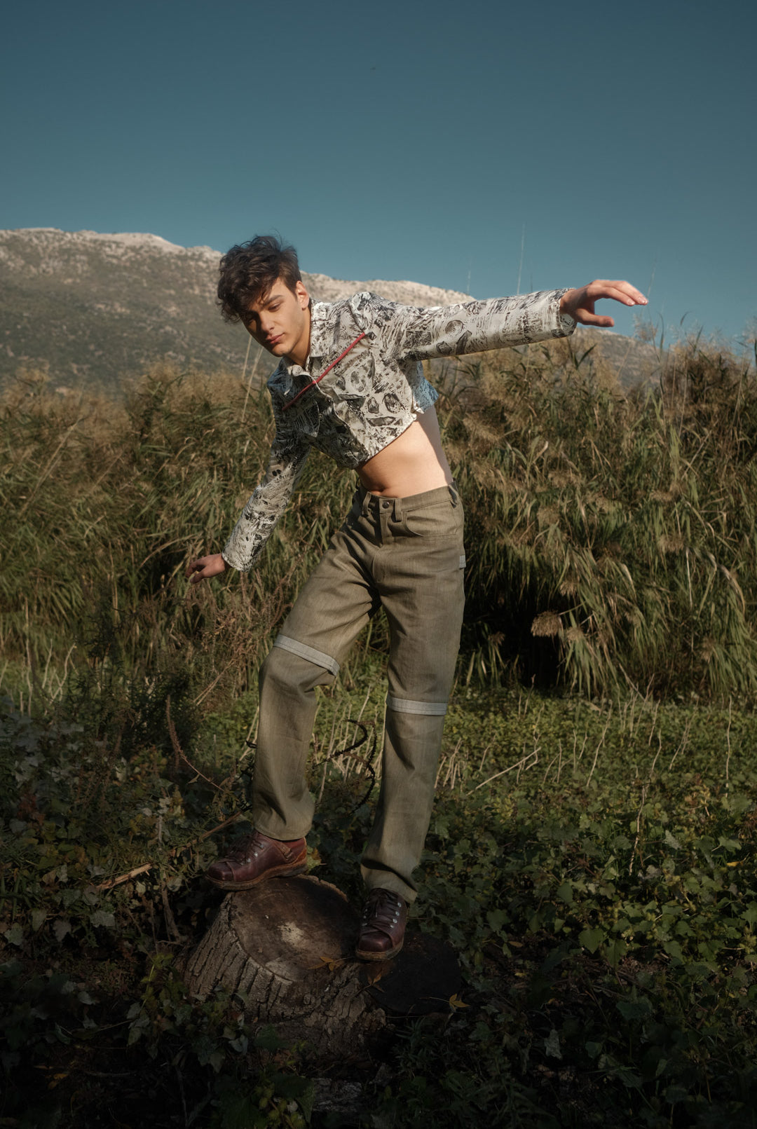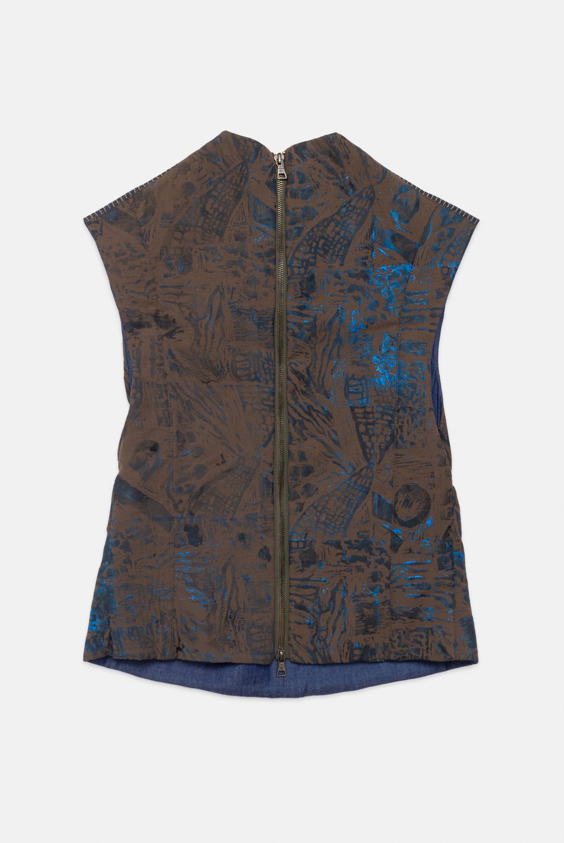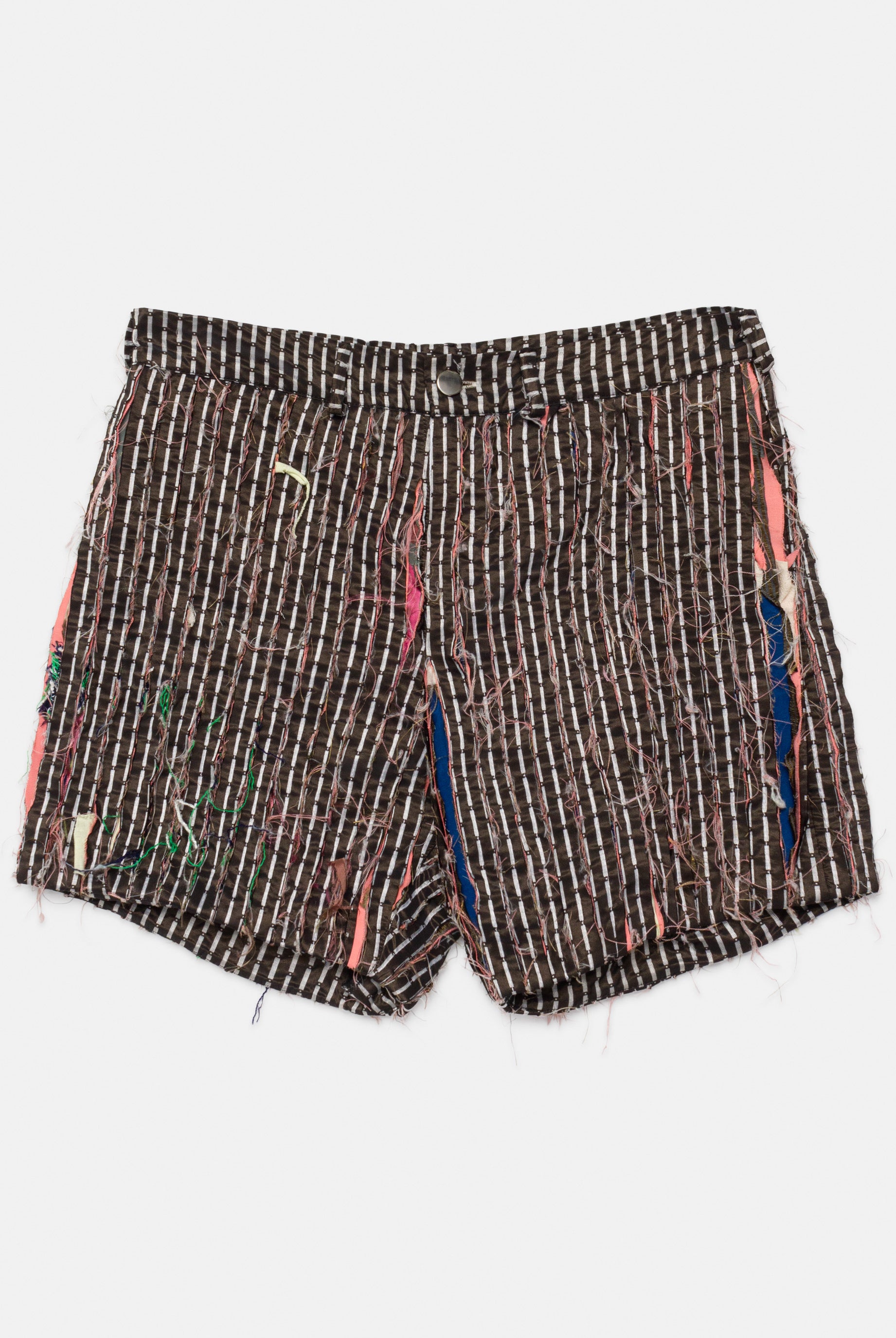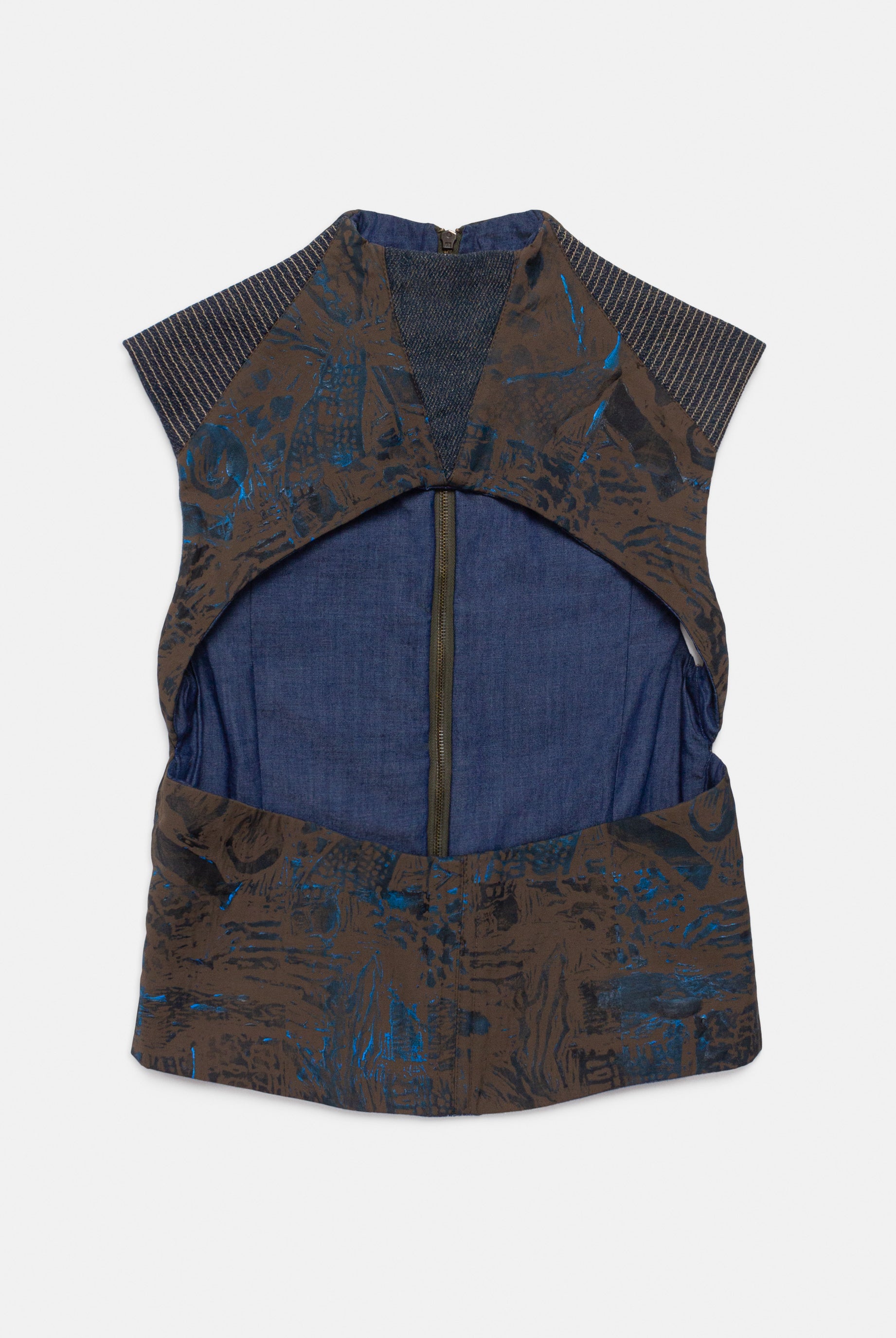 Feral Hearts is a collection that celebrates the wilderness and animal instinct that reside in all humans, and the adventures that teach one to be in touch with the magic of being. Prominent in the collection is the technique of slashing, which produces a heavy, raw effect, like ravaged fur or wild animal skins. The color story is earthy, scattered with pop colors, reflecting light in the darkness, hope and wonder. A block print reminiscent of animal silhouettes also runs throughout the collection.