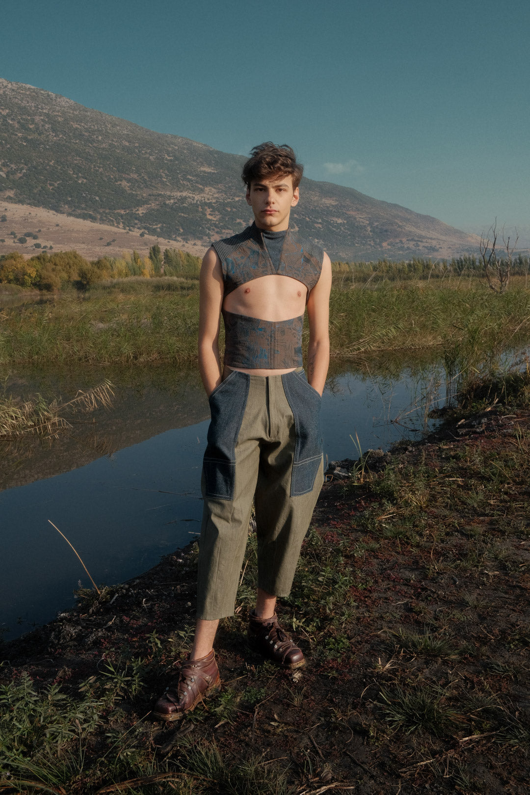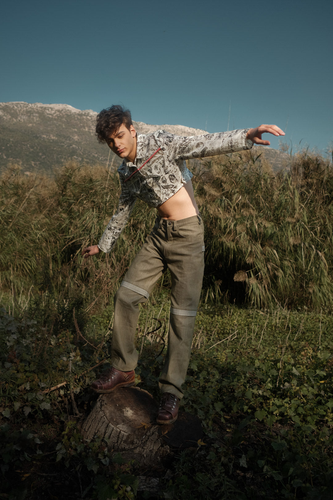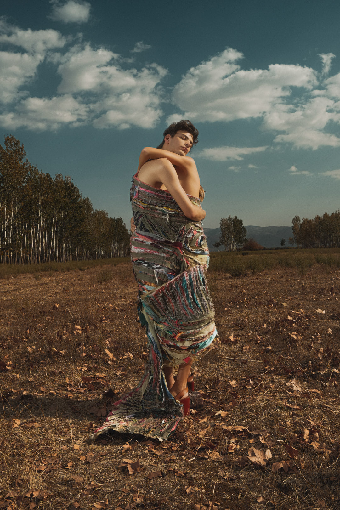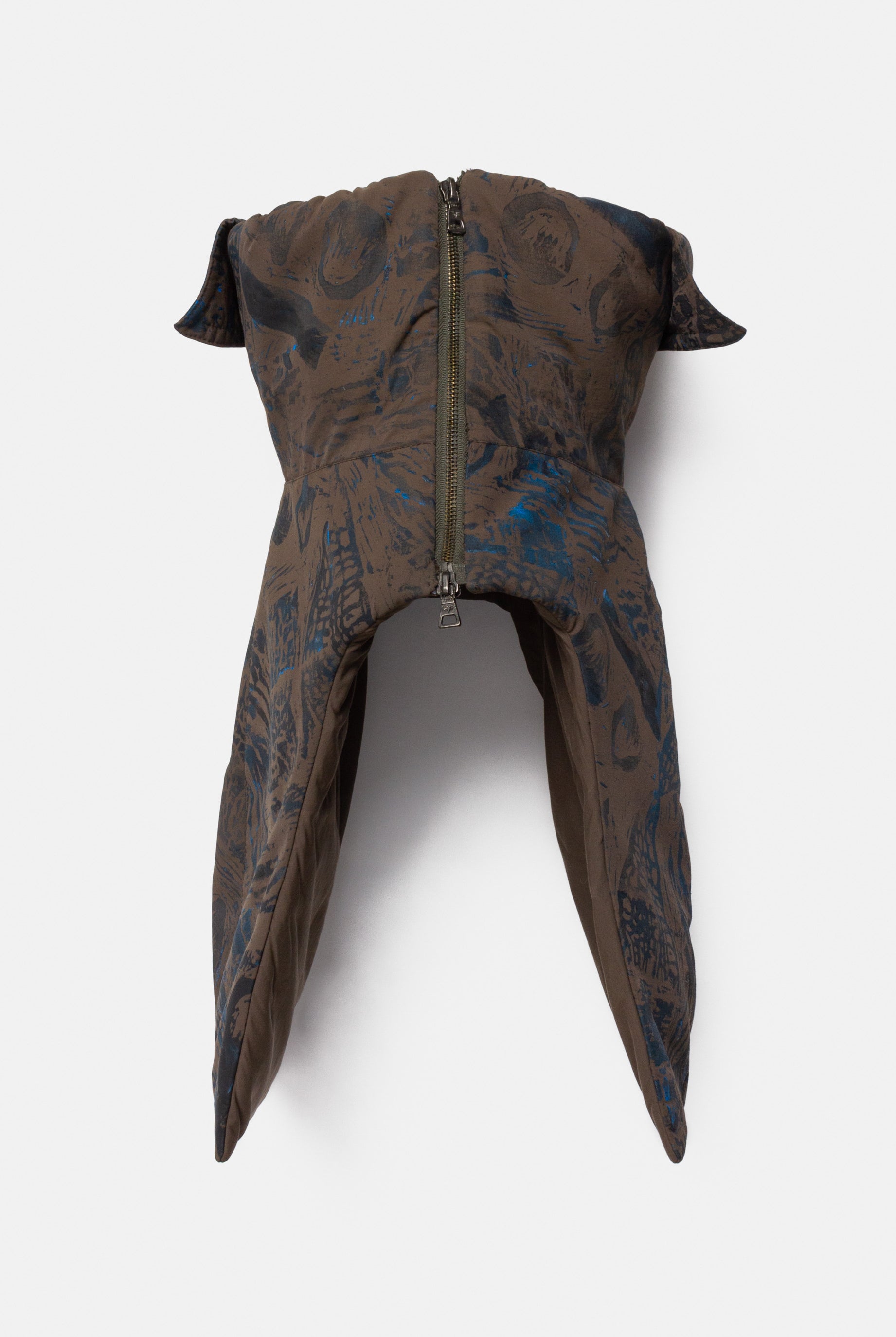 Feral Hearts is a collection that celebrates the wilderness and animal instinct that reside in all humans, and the adventures that teach one to be in touch with the magic of being. Prominent in the collection is the technique of slashing, which produces a heavy, raw effect, like ravaged fur or wild animal skins. The color story is earthy, scattered with pop colors, reflecting light in the darkness, hope and wonder. A block print reminiscent of animal silhouettes also runs throughout the collection.