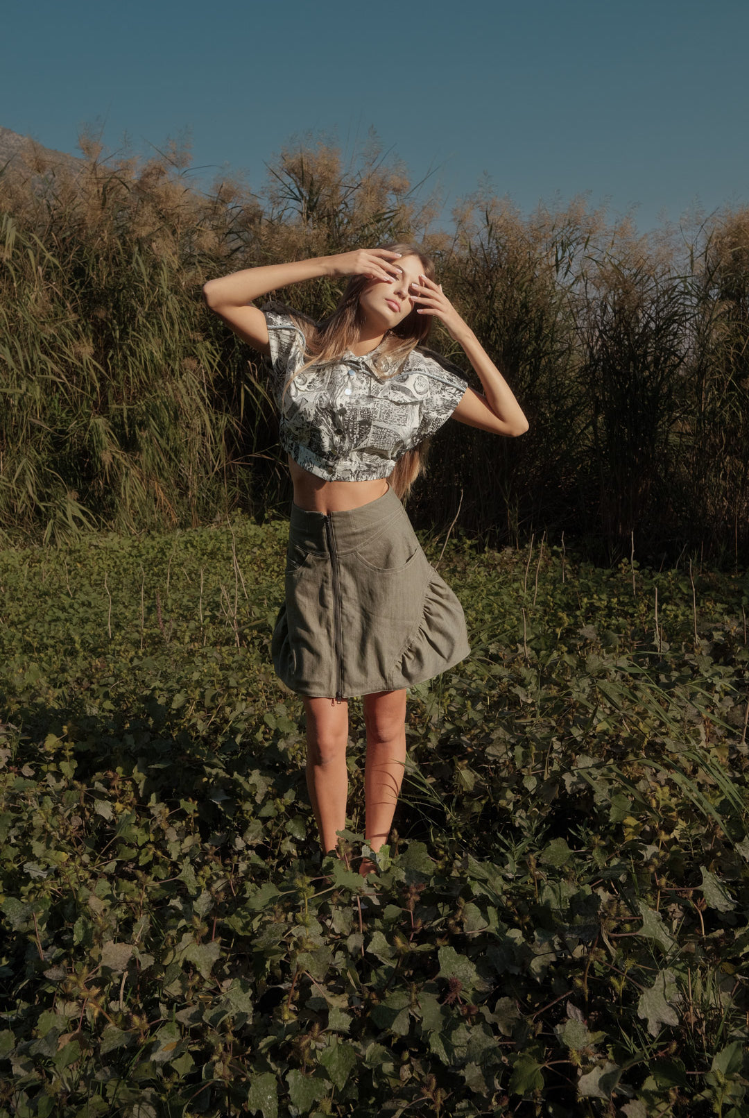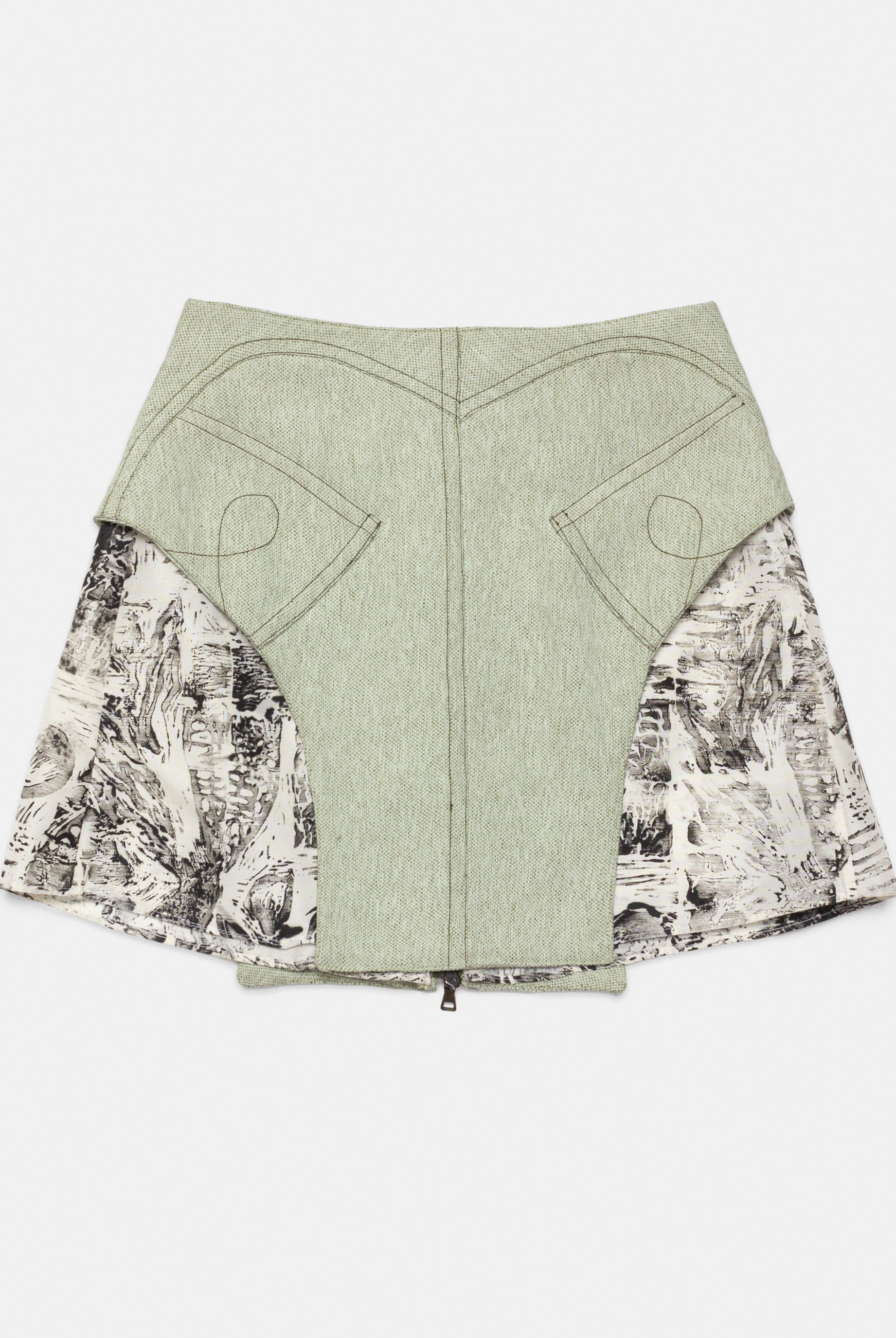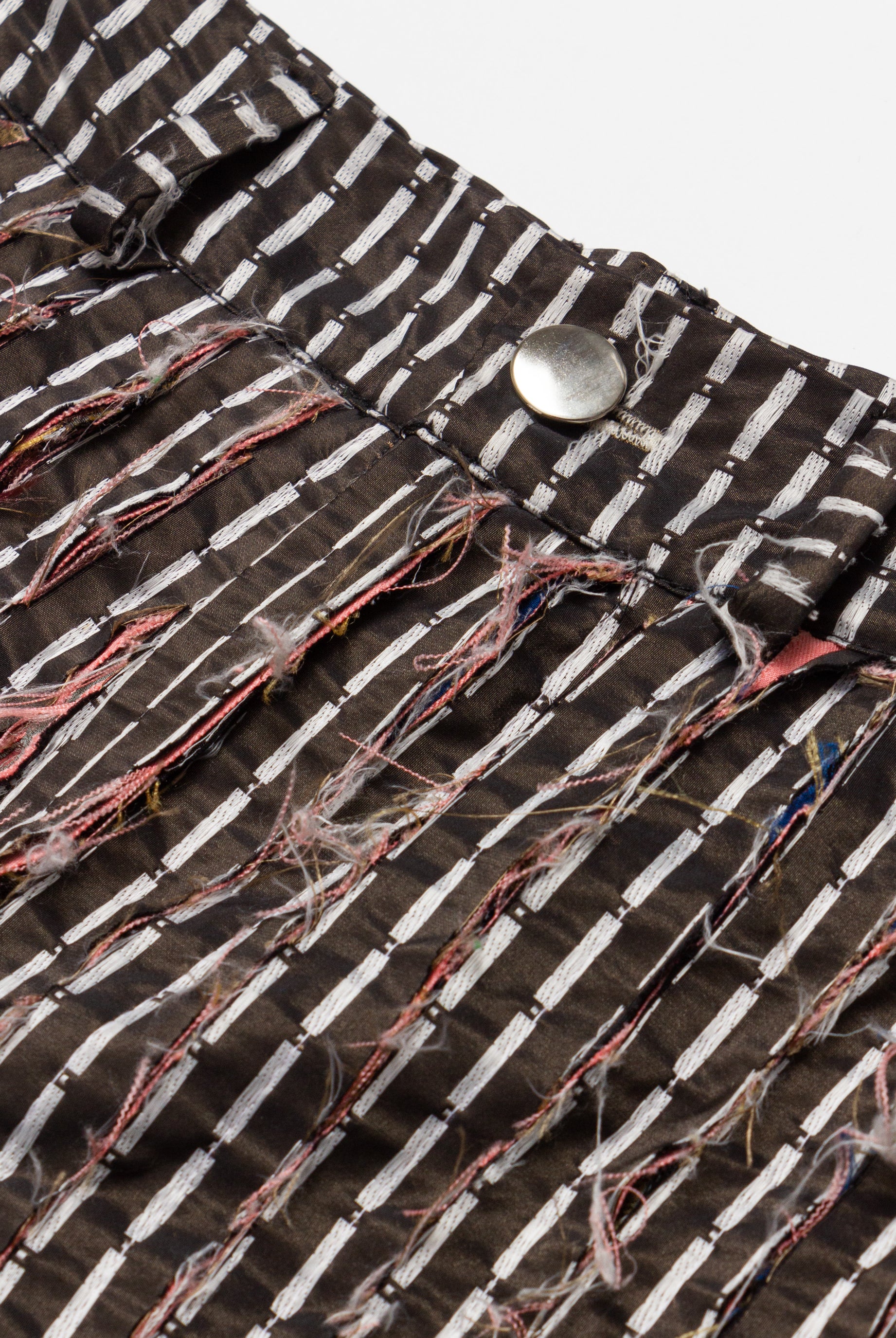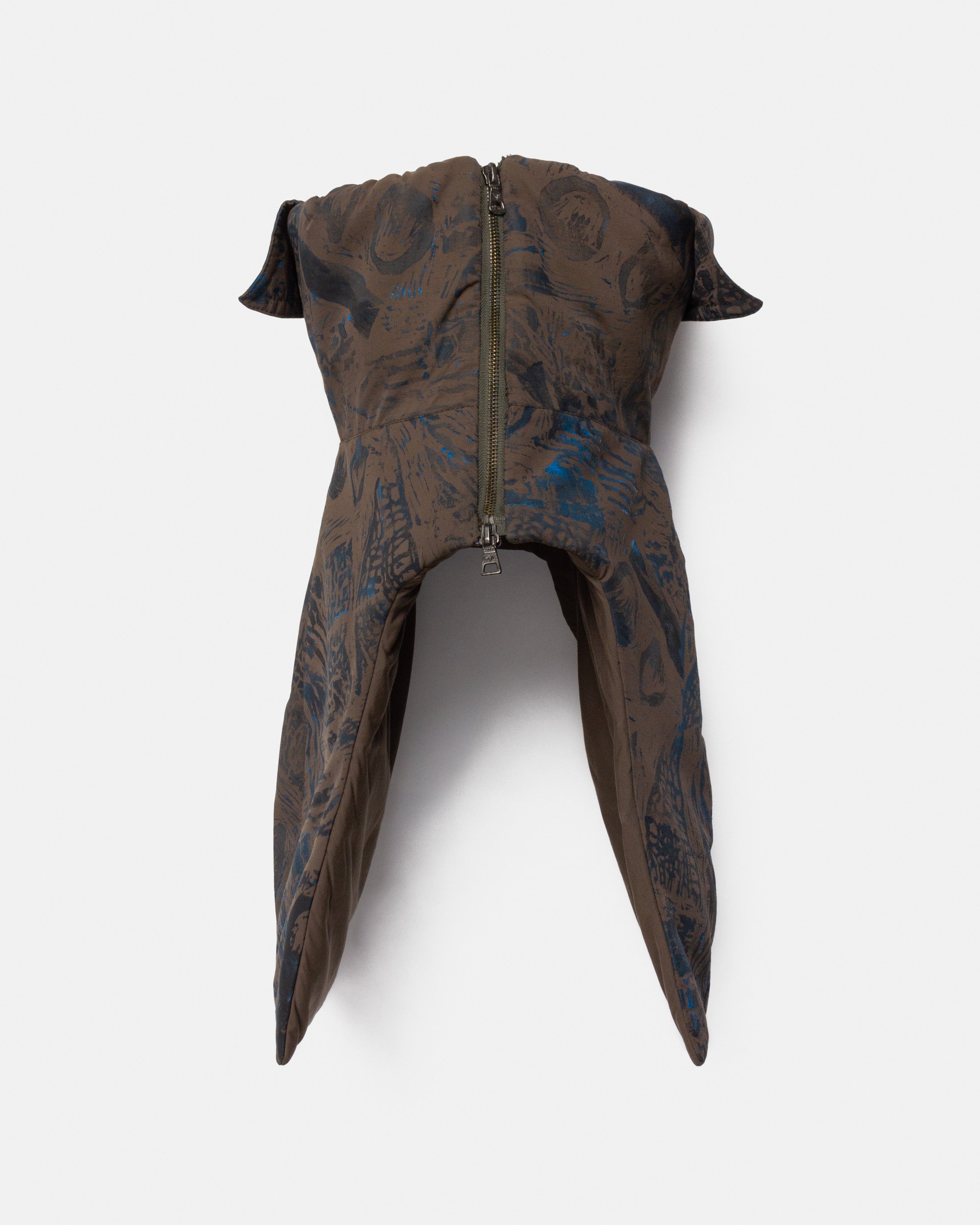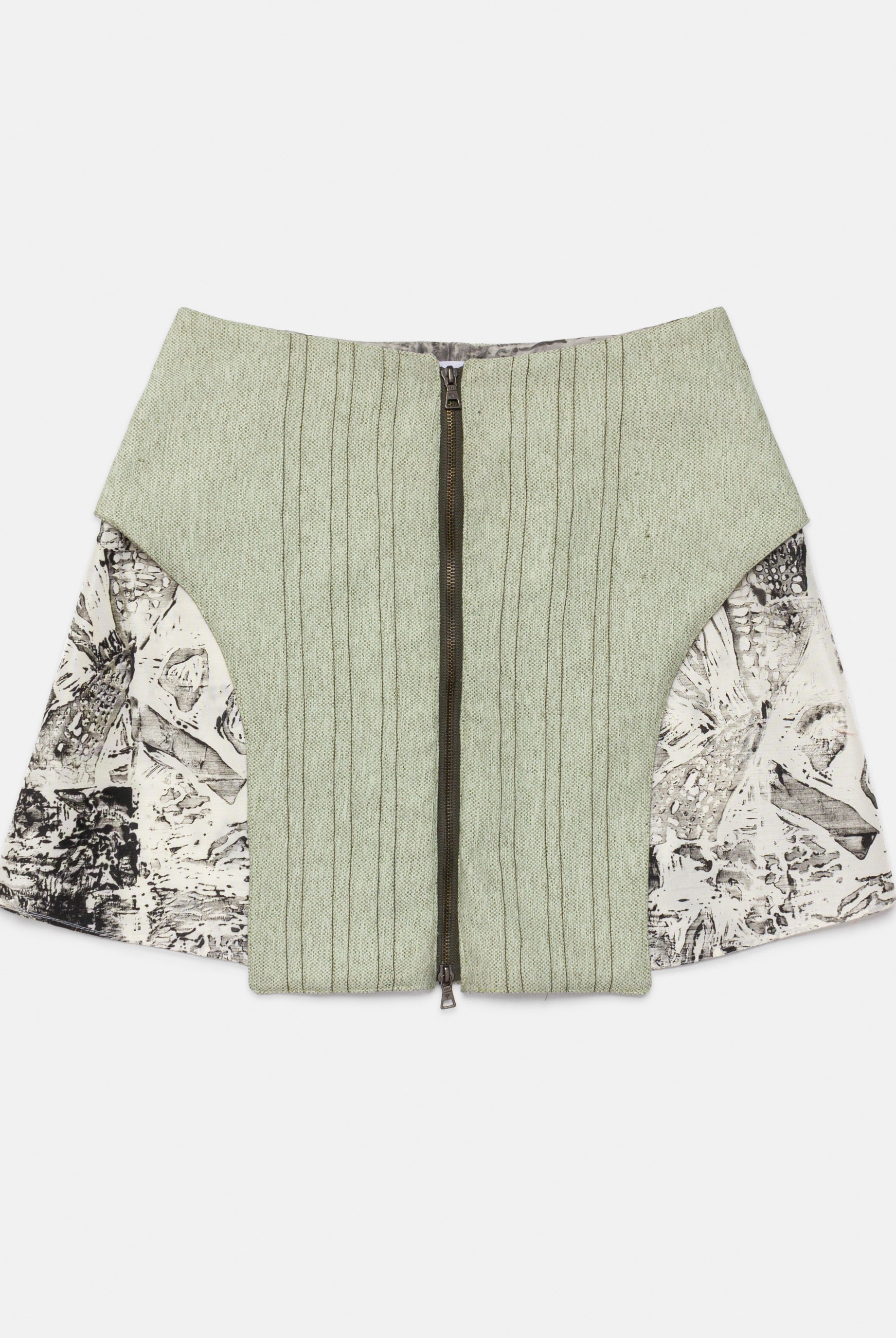 Feral Hearts is a collection that celebrates the wilderness and animal instinct that reside in all humans, and the adventures that teach one to be in touch with the magic of being. Prominent in the collection is the technique of slashing, which produces a heavy, raw effect, like ravaged fur or wild animal skins. The color story is earthy, scattered with pop colors, reflecting light in the darkness, hope and wonder. A block print reminiscent of animal silhouettes also runs throughout the collection.
