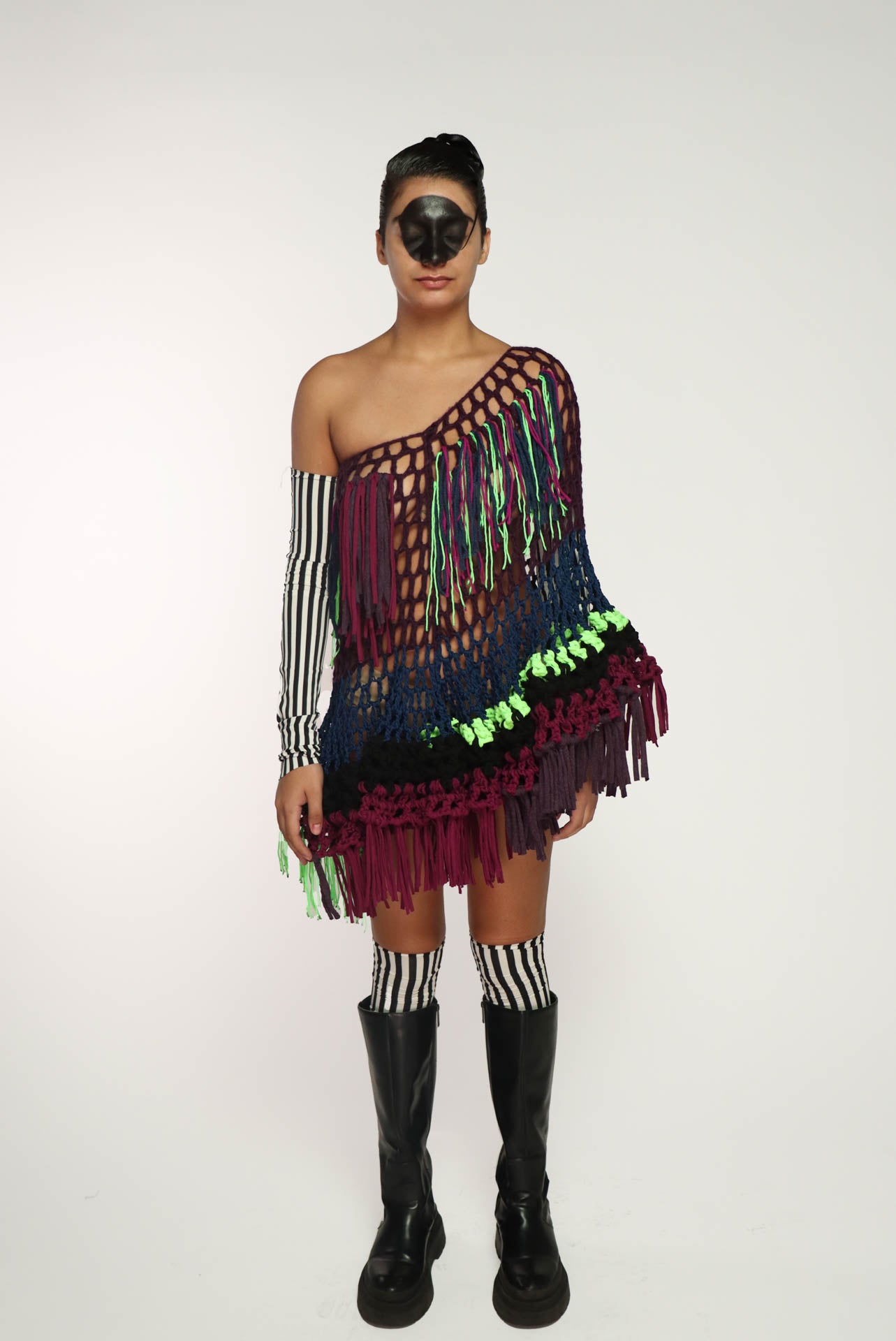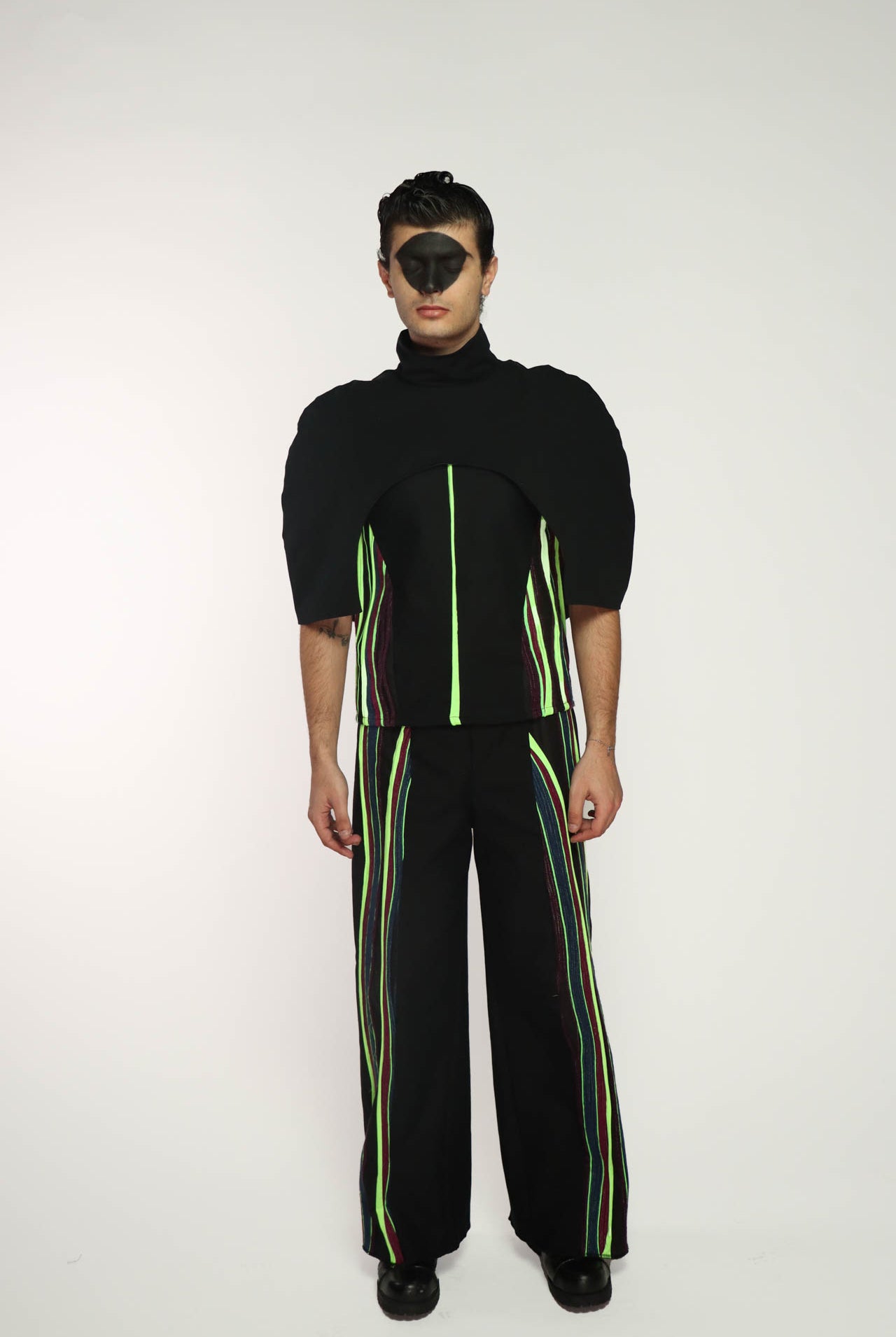 From Saida, Lebanon, Mostafa, Class of 2025, transforms personal stories into fashion, blending traditional craftsmanship with experimental techniques. Rooted in family traditions of making, his designs carry both precision and emotion, advocating for diversity, mental health, and self-expression.