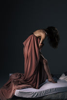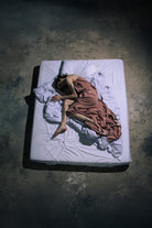 A dress made of eight meters of crepe satin, inspired by bedsheets. It features invisible finishing and a suspended inner corset made of faux leather. The corset is constructed in a way that covers the intimate area.