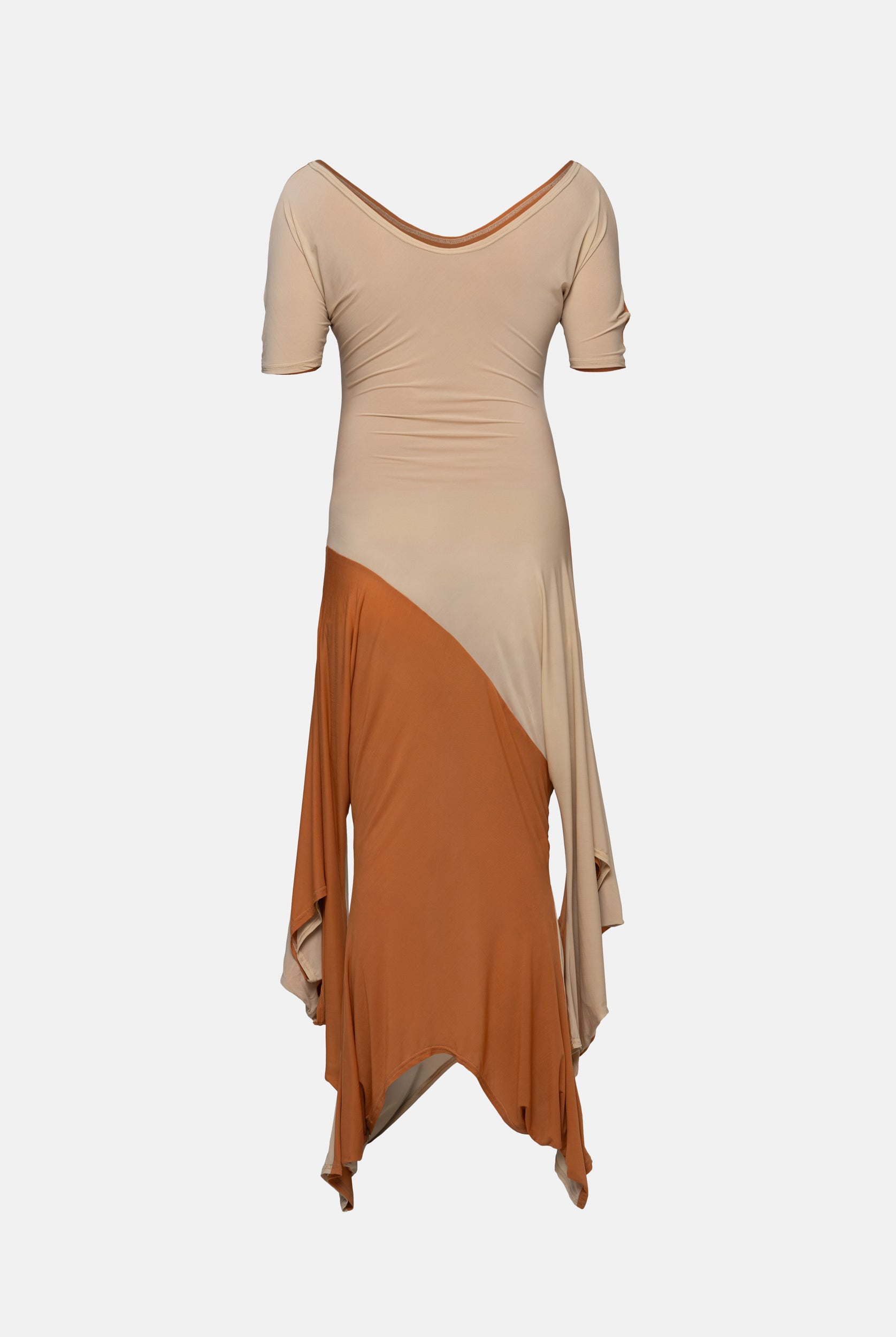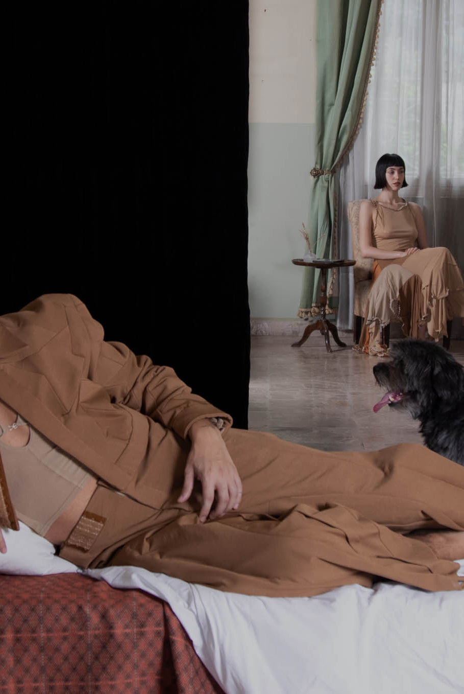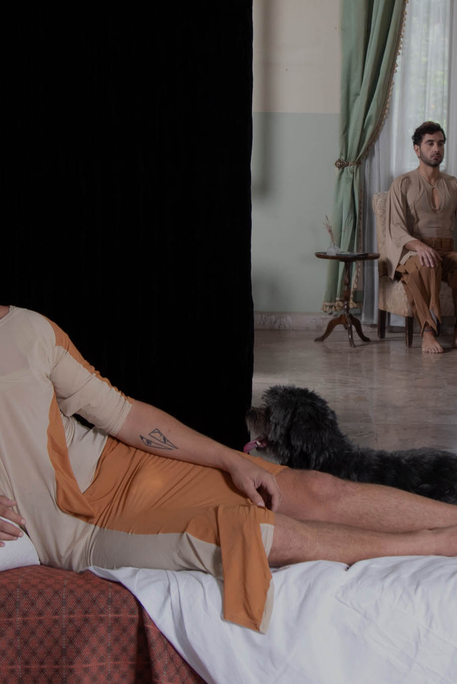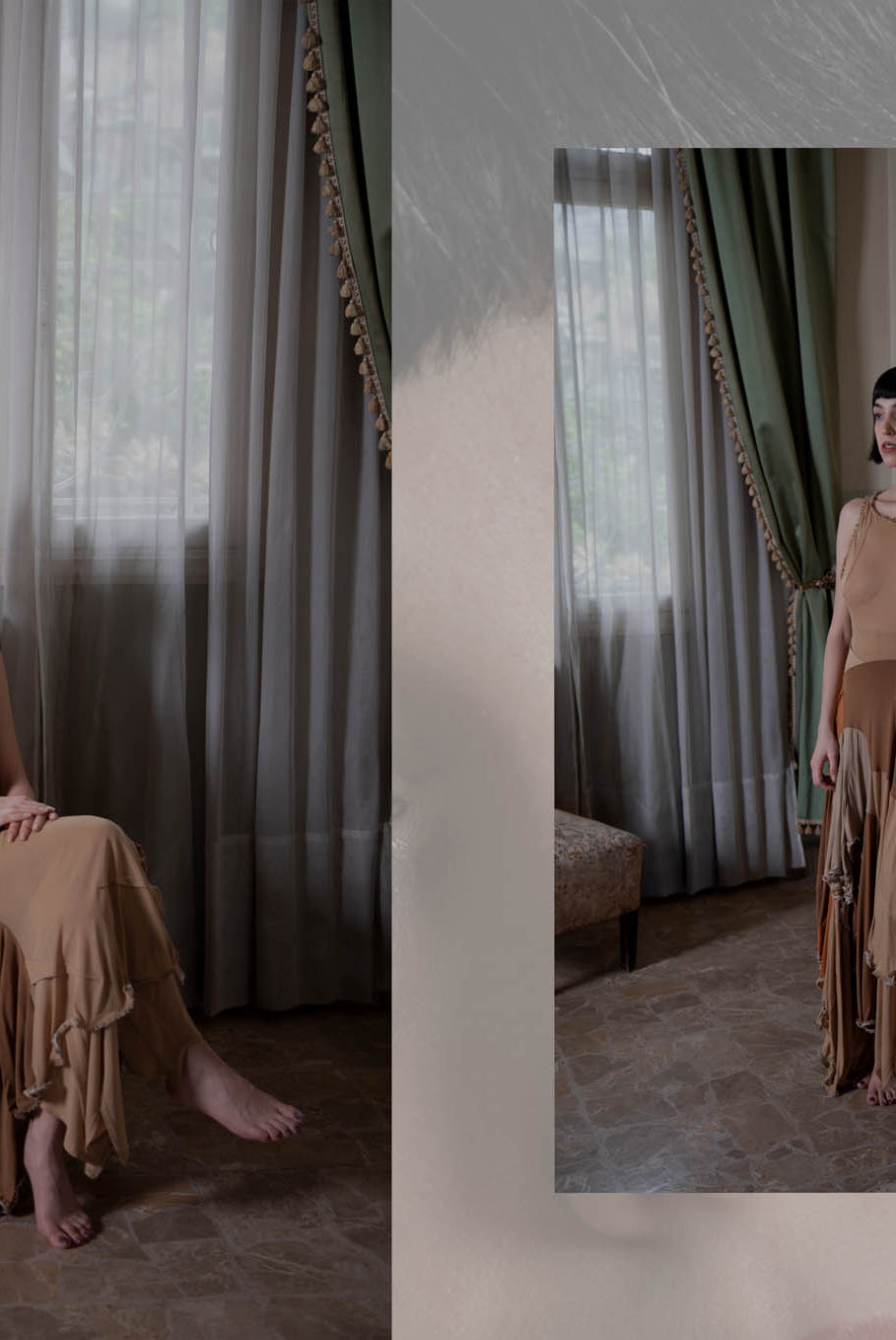 Inspired by the cinematic narrative of Almodovar's "The Skin I Live In," this collection, titled ‘The Core of Being’, disrupts conventional fashion norms, embodying the intricate journey of unraveling human identity. While the garments radiate femininity, when worn on a masculine form, a transformative narrative emerges, challenging perceptions and urging a reevaluation of established gender norms. Going beyond mere aesthetics, this collection purposefully delves into the authentic layers of identity beneath the surface. A conscious departure from the ordinary, it commands attention and encourages a fresh perspective at the intersection of fashion and identity. The collection relies on neutral colors such as brown, beige and nude for its palette, allowing patterns to lead the design process, resulting in malleable, dynamic pieces predominantly in jersey and gabardine fabrics.