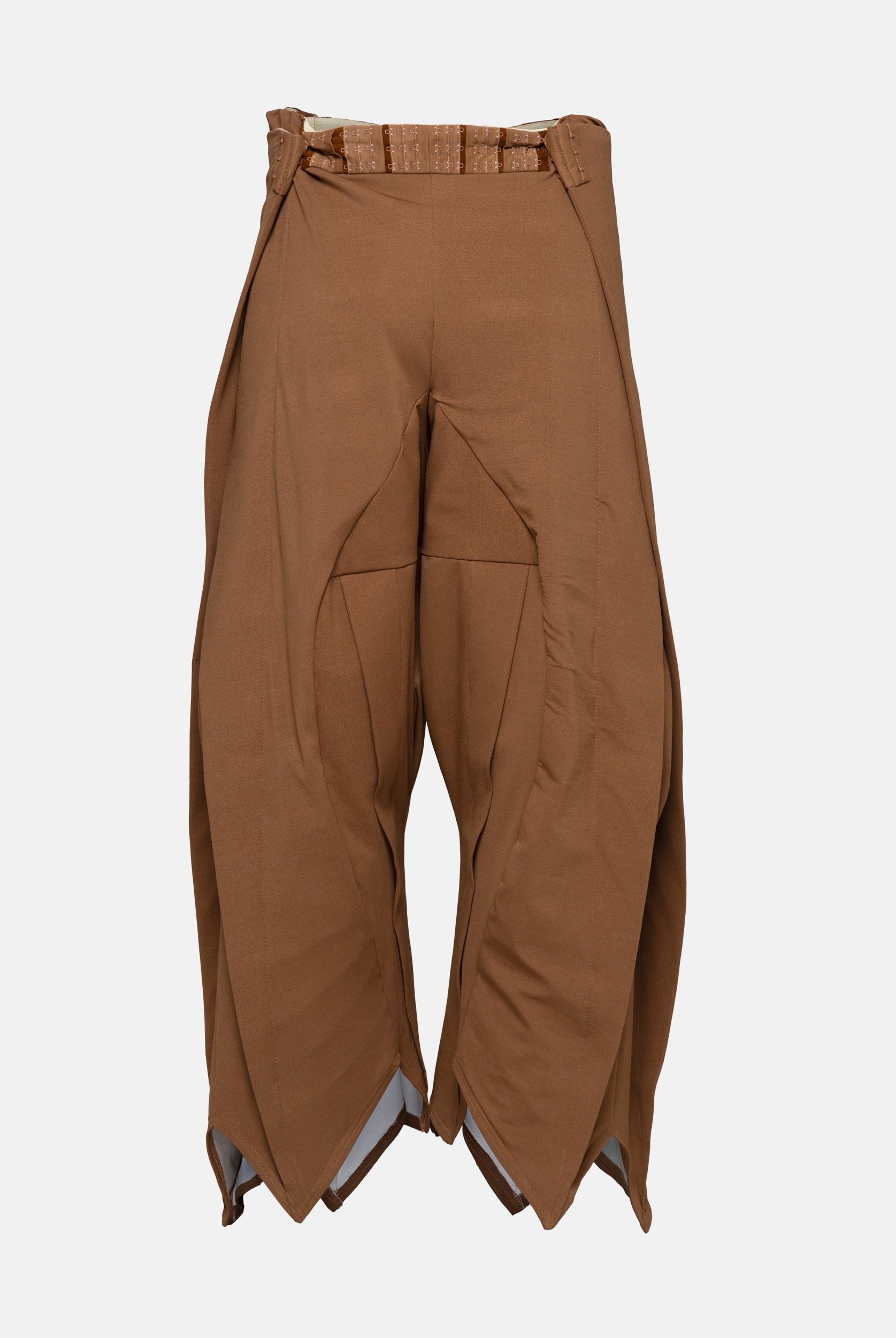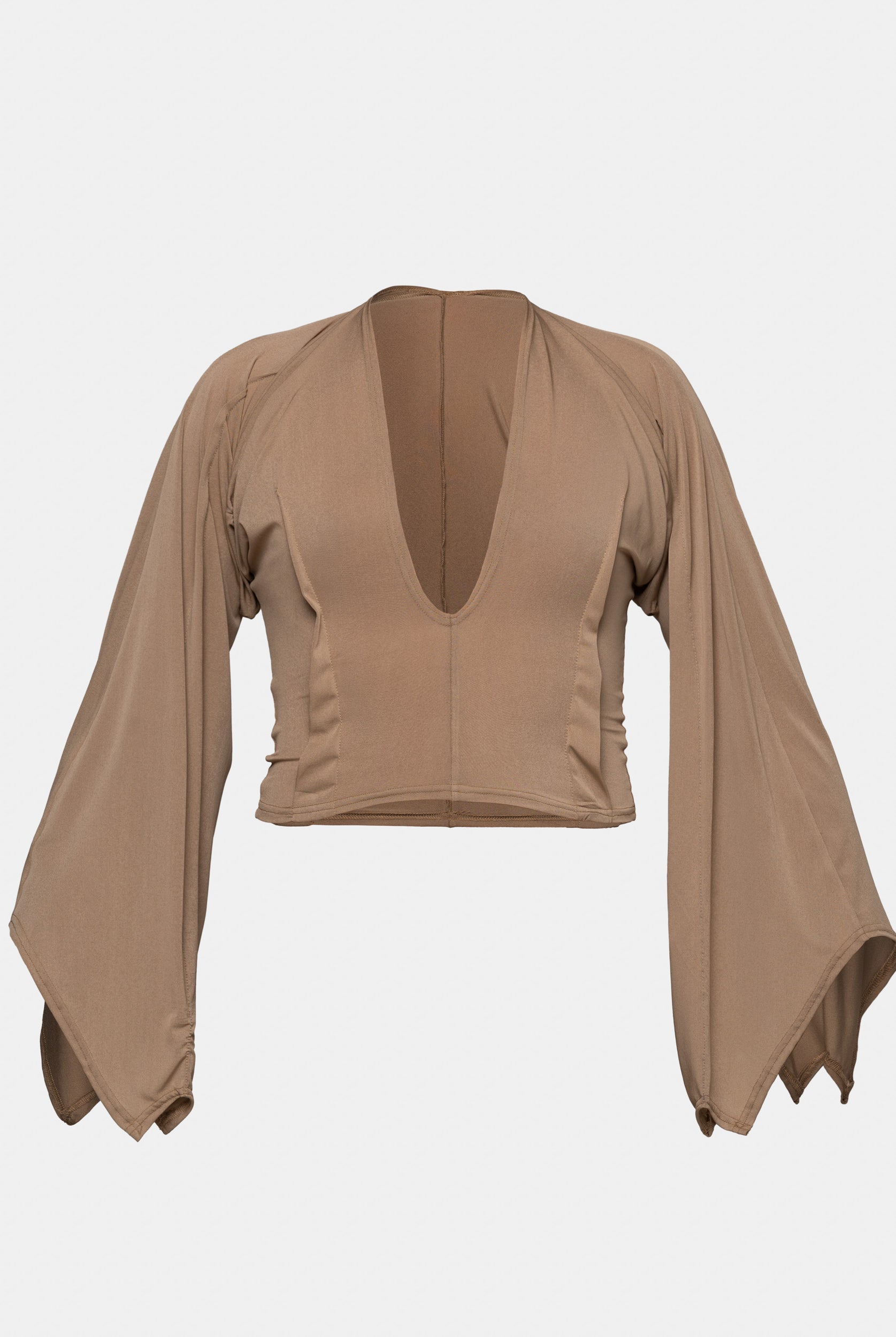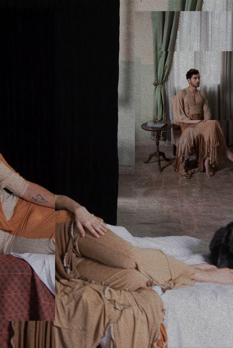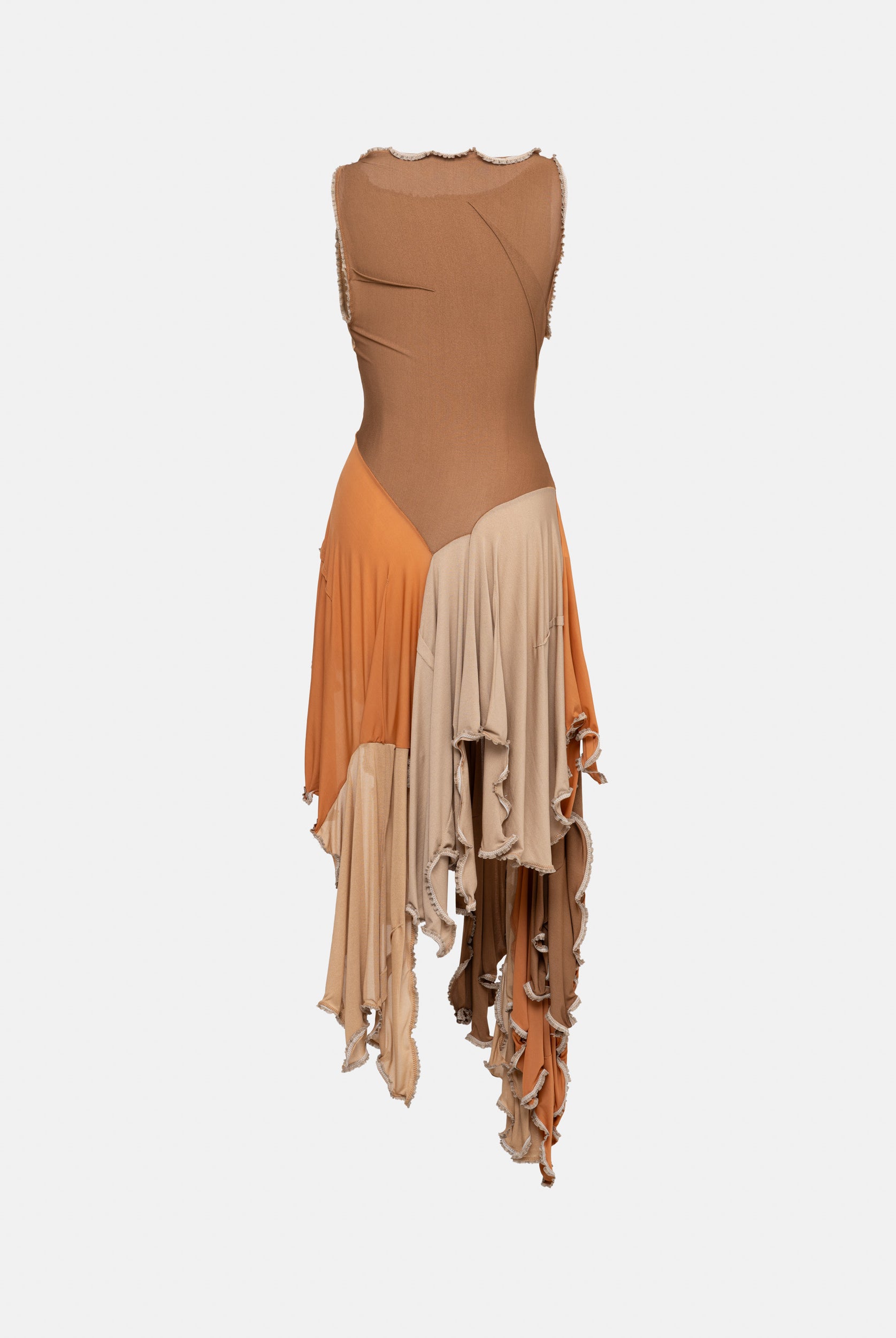 Inspired by the cinematic narrative of Almodovar's "The Skin I Live In," this collection, titled ‘The Core of Being’, disrupts conventional fashion norms, embodying the intricate journey of unraveling human identity. While the garments radiate femininity, when worn on a masculine form, a transformative narrative emerges, challenging perceptions and urging a reevaluation of established gender norms. Going beyond mere aesthetics, this collection purposefully delves into the authentic layers of identity beneath the surface. A conscious departure from the ordinary, it commands attention and encourages a fresh perspective at the intersection of fashion and identity. The collection relies on neutral colors such as brown, beige and nude for its palette, allowing patterns to lead the design process, resulting in malleable, dynamic pieces predominantly in jersey and gabardine fabrics.
