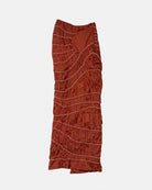 Mid waist gathered skirt with bias between each cut. Featuring hip pocket and side slit.