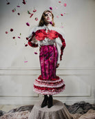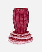 Midi skirt with panel cuts, pleats, and a voluminous structured cage in layered taffeta.