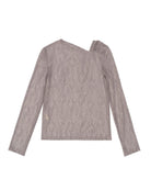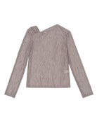 A stretchy top with a twist. With an asymmetrical neckline that gathers at one shoulder, long sleeves and a close fit, it is both versatile and edgy. Perfect for layering or standing on its own.