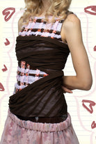 A structured cotton-polyester woven top softened by chiffon draping at the bust and waist.