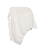 A translucent top in a soft polyester-cotton blend, pleated in a grid-like formation and drapes loosely across the body. The veil-pleating technique is enhanced by shoulder button closures that maintain the garment’s airy flow.