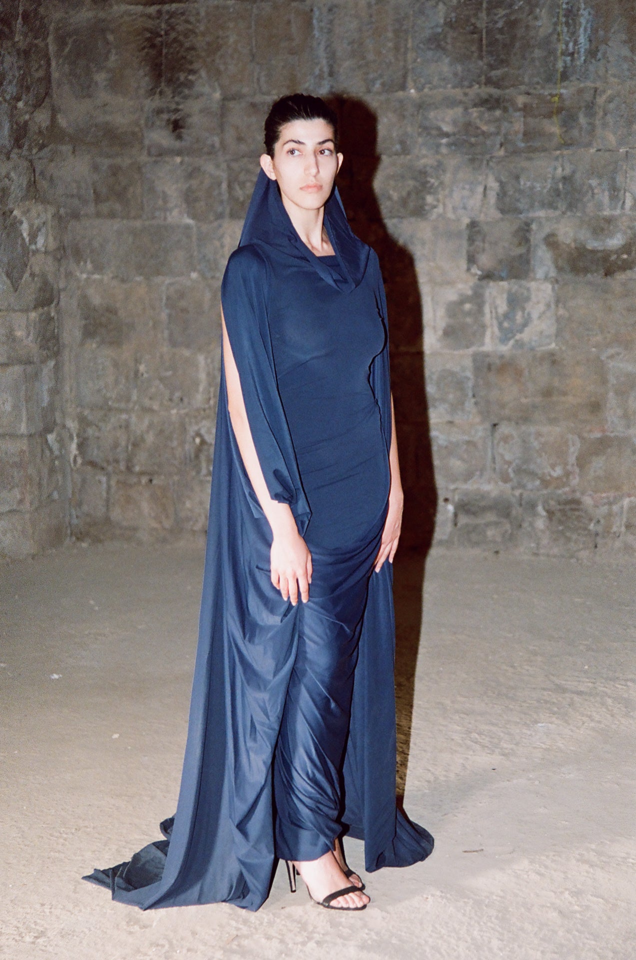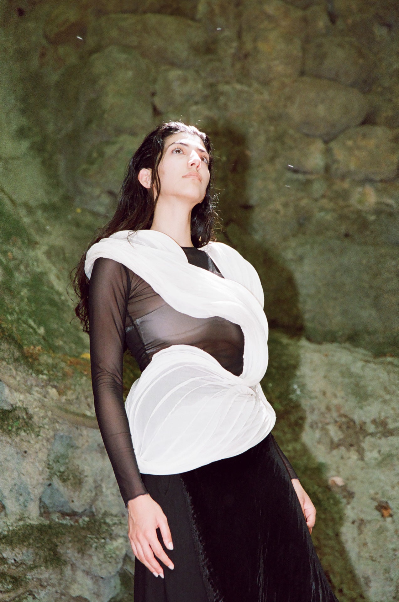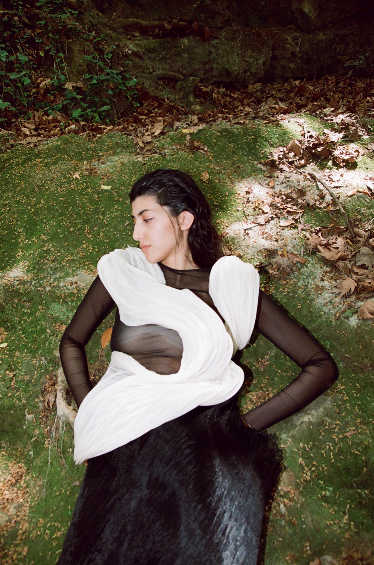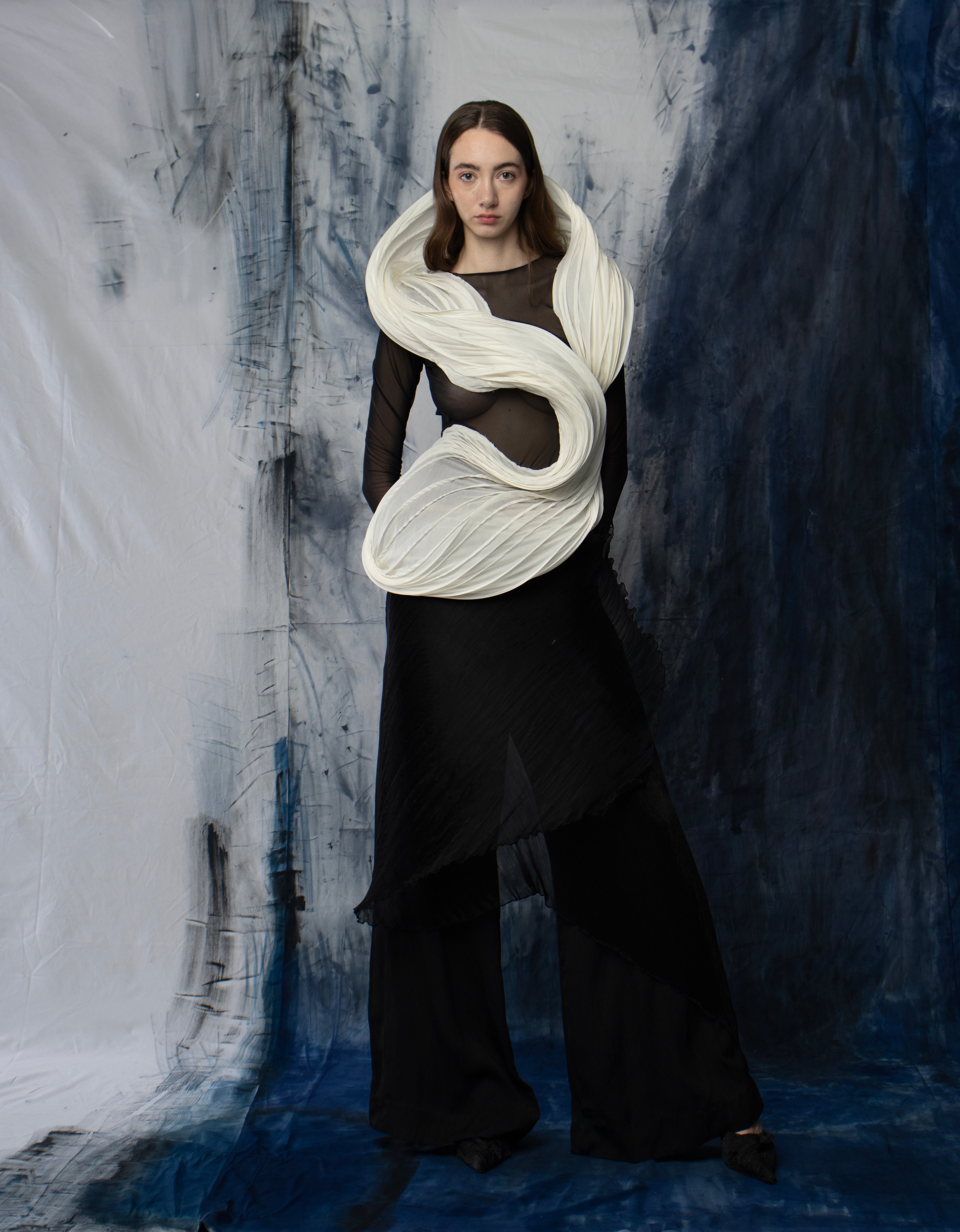 Jihan Azzam, emerging designer and recent Creative Space Beirut graudate, is focused on research-driven design, fabric manipulation, and conceptual development, drawing inspiration from science, nature, and philosophy. She worked with award-winning Lebanese brand Superyaya, contributing to collection development and construction. Her work translates abstract ideas into wearable narratives through innovative draping, textile experimentation, and attention to detail.