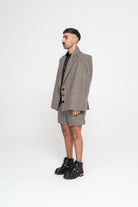 A bold outer layer that merges tailoring with drama. With a cape-like shape and structured shoulders, it creates the illusion of sleeves. Hidden inner pockets are tucked into the lining, and buttons secure the front for a commanding yet refined look, that offers freedom of movement.